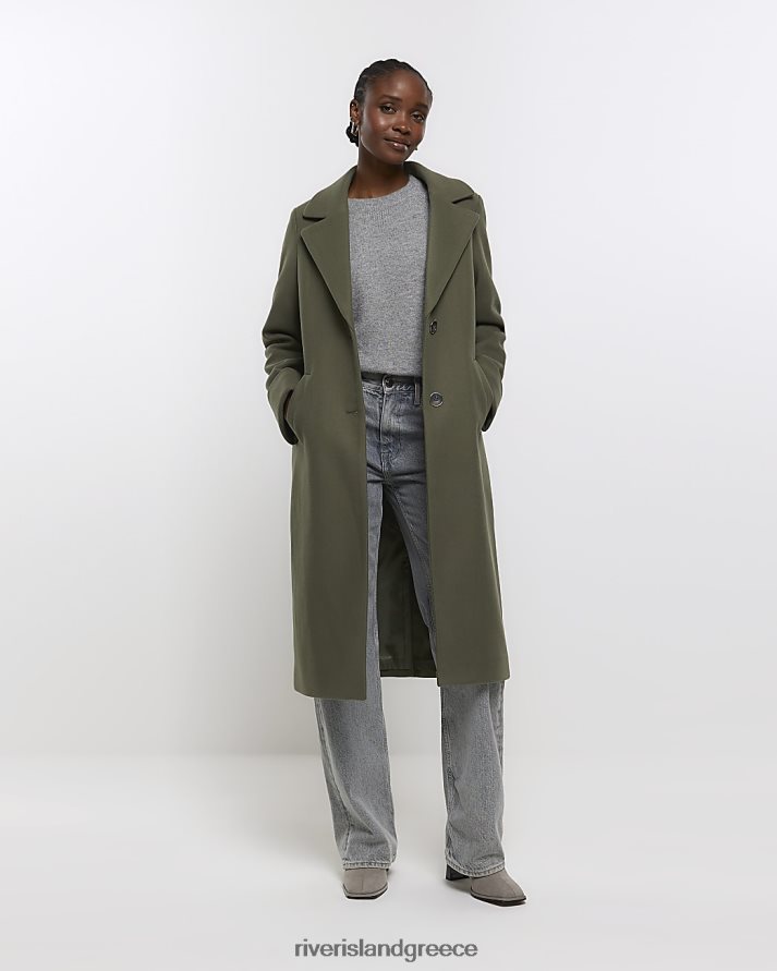 River Island ενδύματα χακί γυναίκες παλτό παραγάδι με ρολό μανίκι B6N8X4225