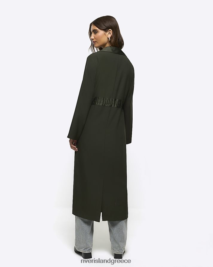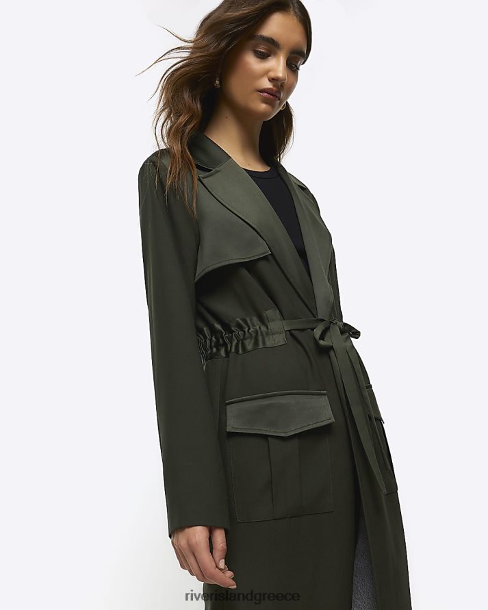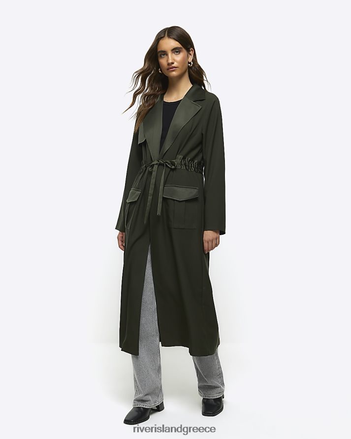 River Island ενδύματα χακί γυναίκες παλτό παραγάδι με σατέν ζώνη B6N8X955