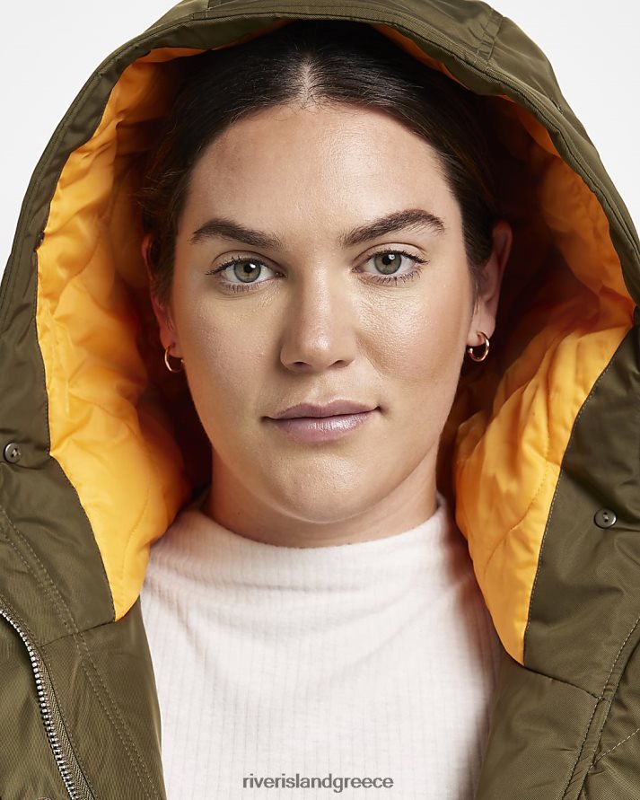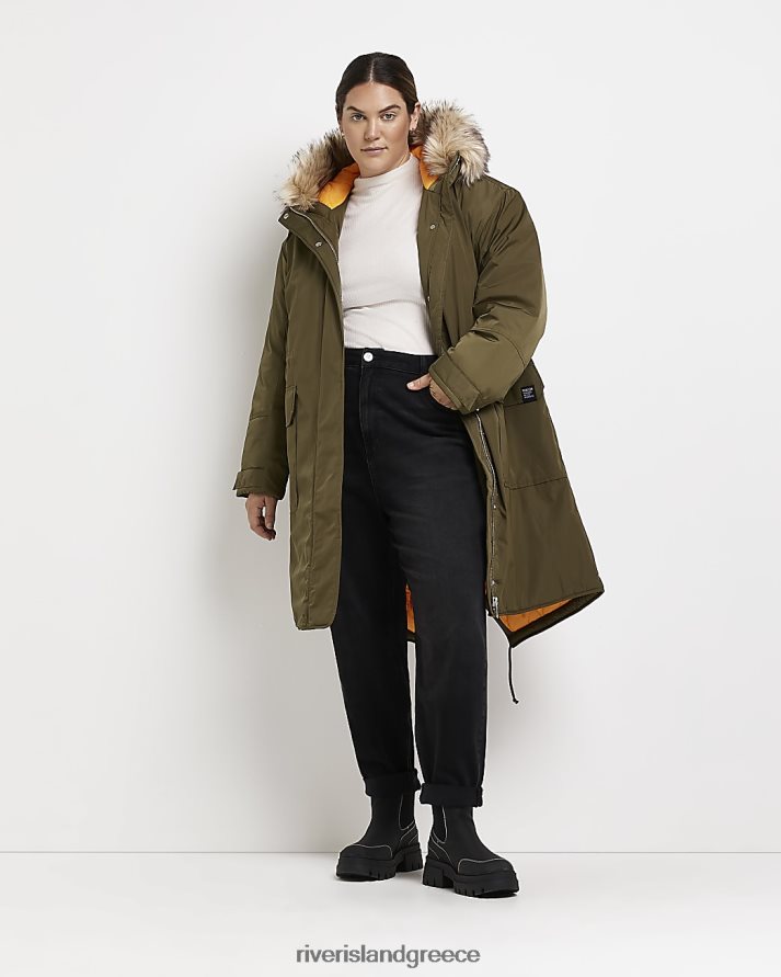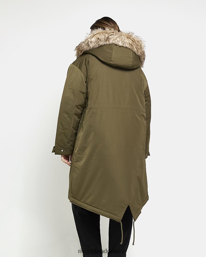 River Island ενδύματα χακί γυναίκες συν παλτό παρκά με κουκούλα από ψεύτικη γούνα B6N8X5169