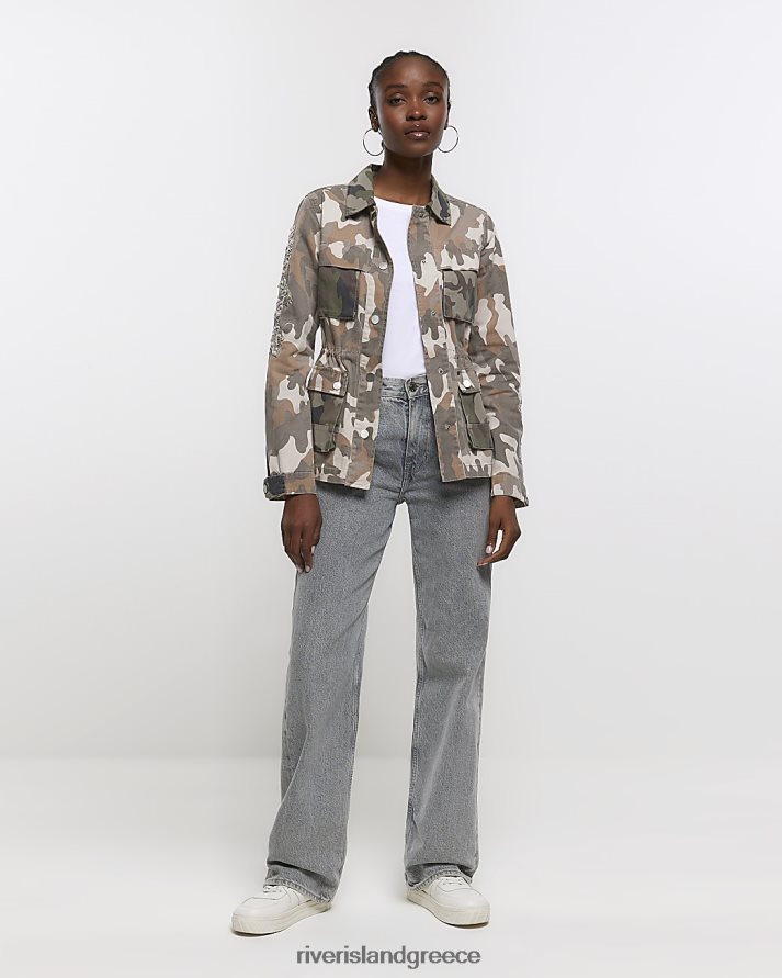 River Island ενδύματα χακί γυναίκες camo διακοσμημένο βοηθητικό σάκο B6N8X4399