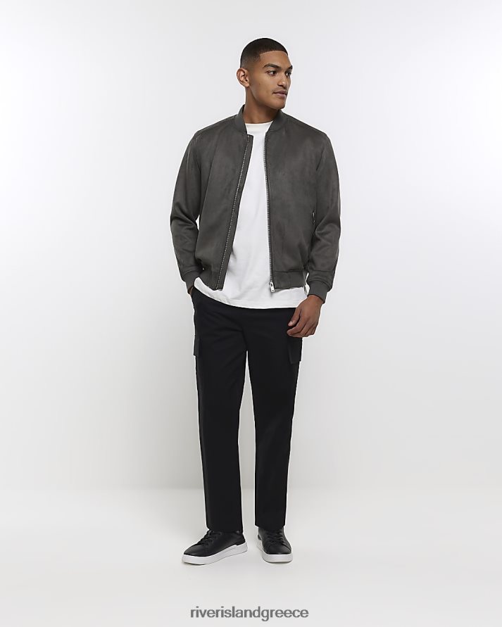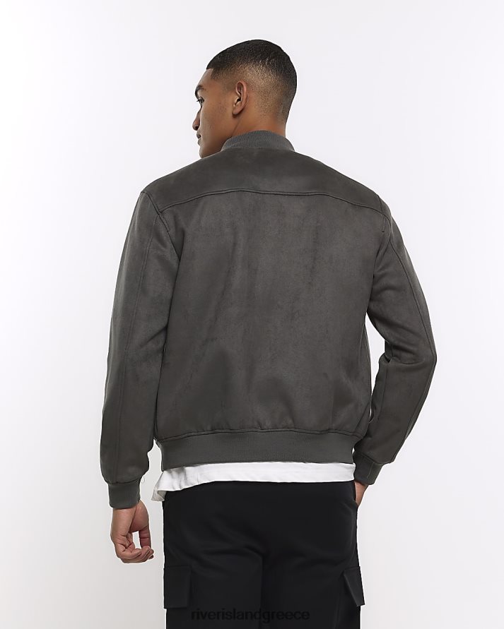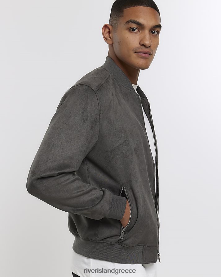 River Island ενδύματα γκρί άνδρες κανονική εφαρμογή suedette bomber jacket B6N8X2418