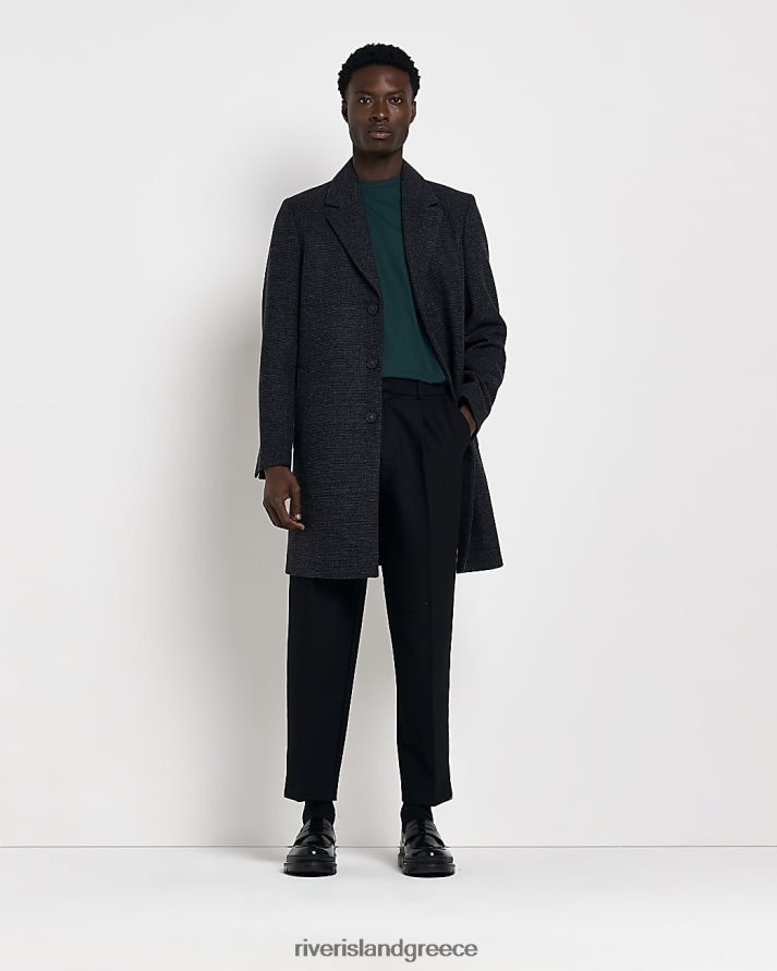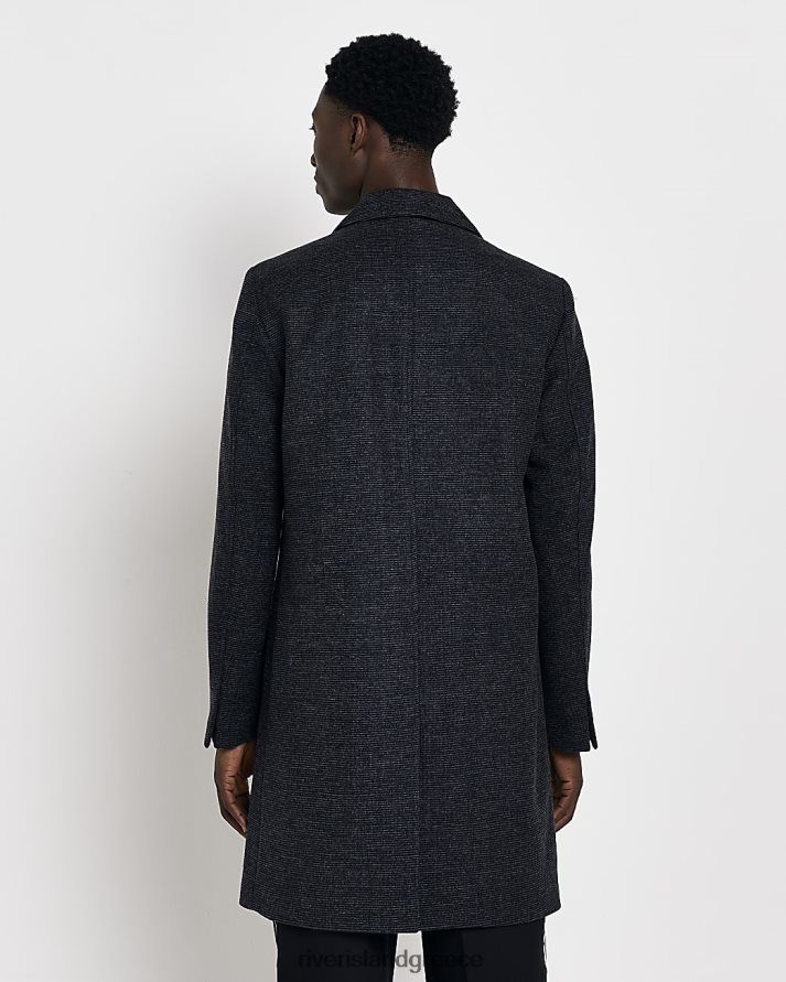 River Island ενδύματα γκρί άνδρες κουμπιά twill μέσα από μάλλινο παλτό B6N8X2452