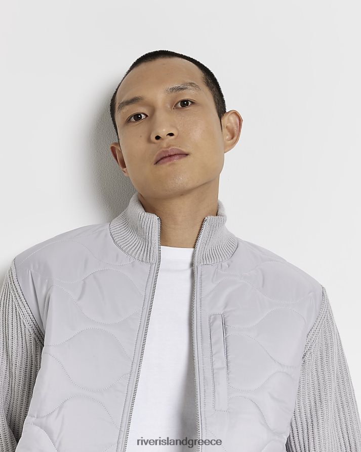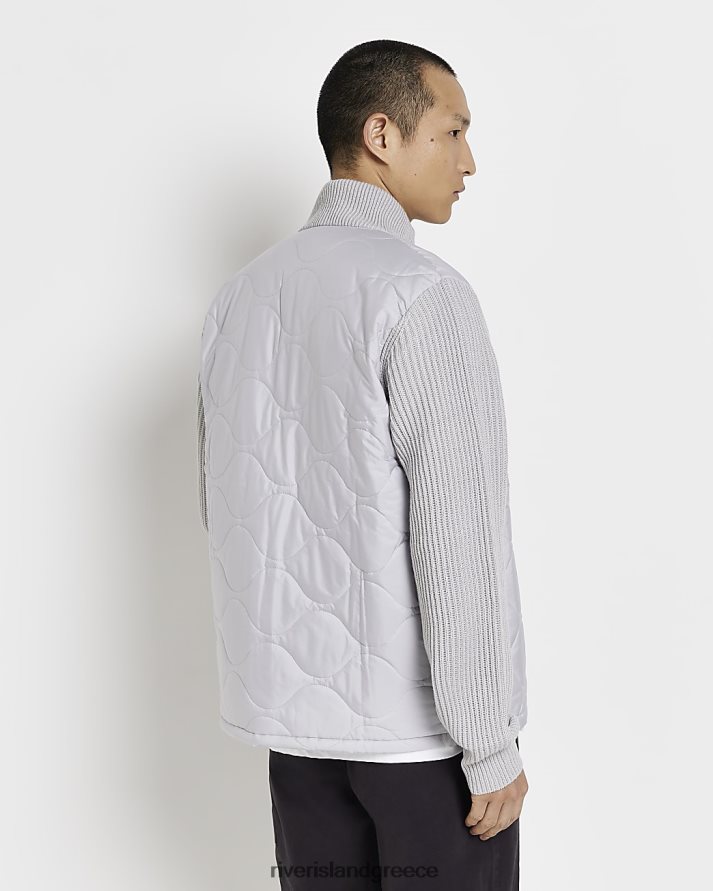 River Island ενδύματα γκρί άνδρες υβριδικό καπιτονέ τζάκετ με κανονική εφαρμογή B6N8X5400