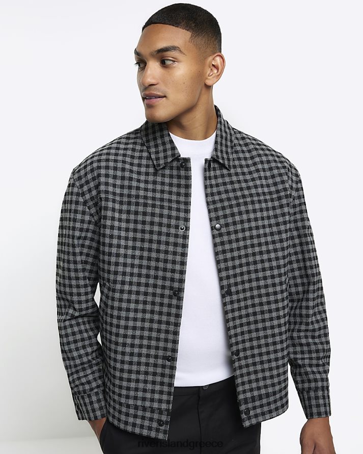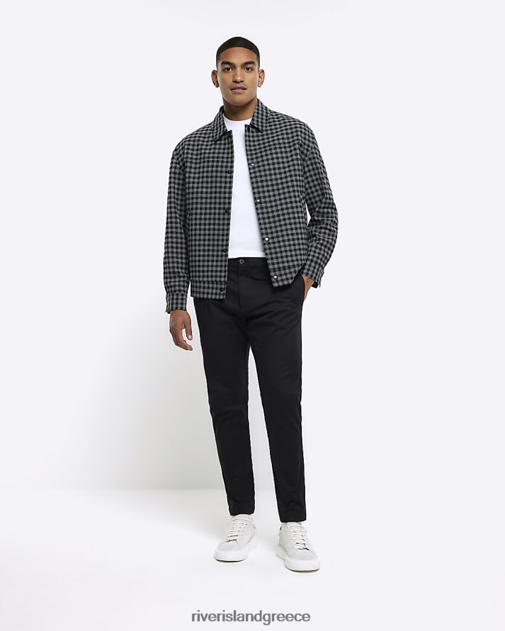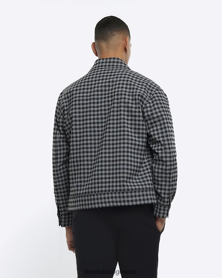 River Island ενδύματα γκρί άνδρες slim fit boucle check harrington jacket B6N8X5661