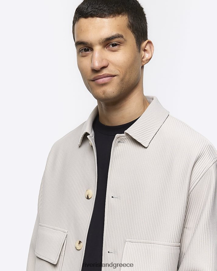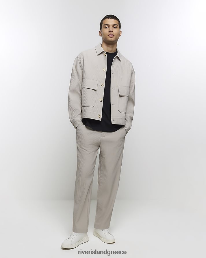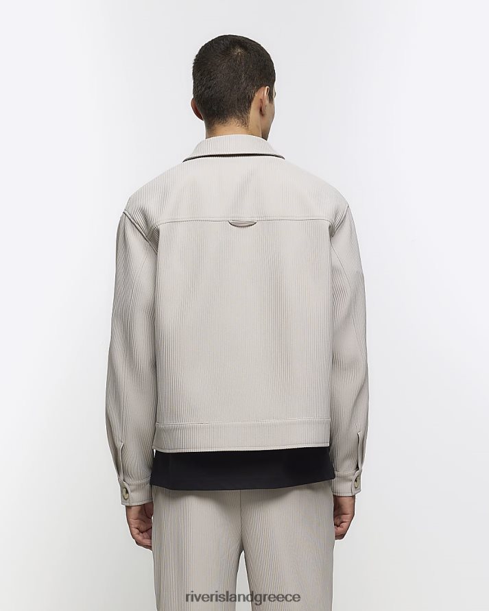 River Island ενδύματα εκρού άνδρες σακάκι plisse harrington με κανονική εφαρμογή B6N8X5674