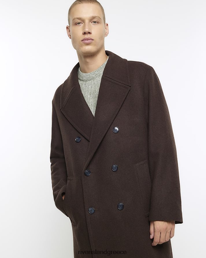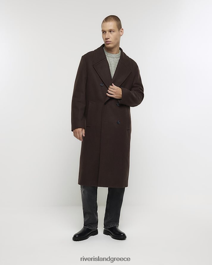 River Island ενδύματα καφέ άνδρες παλτό premium με κανονική εφαρμογή B6N8X2605