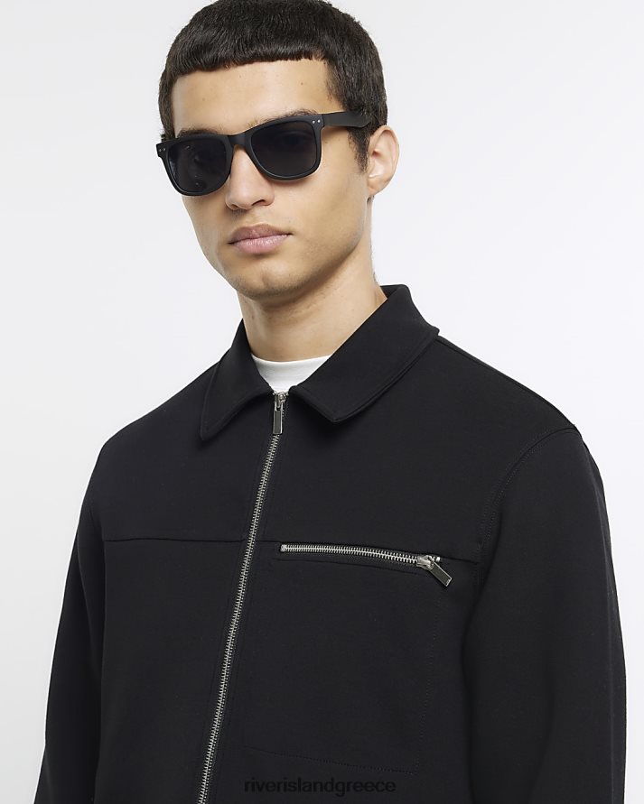 River Island ενδύματα μαύρος άνδρες έξυπνο μπουφάν από νεοπρέν σε κανονική εφαρμογή B6N8X5384