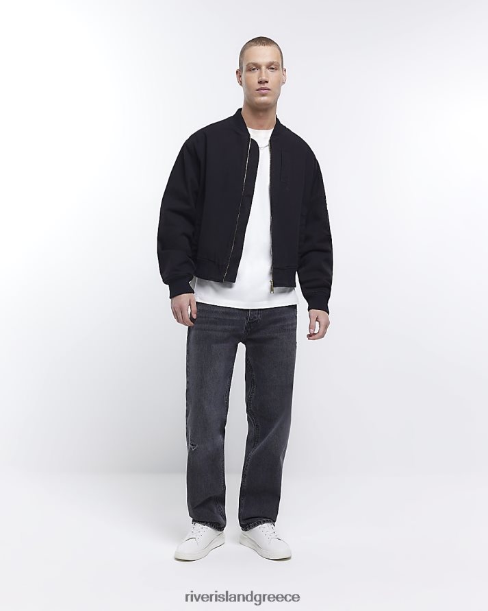 River Island ενδύματα μαύρος άνδρες κανονική εφαρμογή καμβάς ma1 bomber jacket B6N8X3069