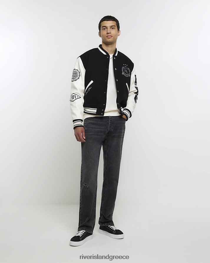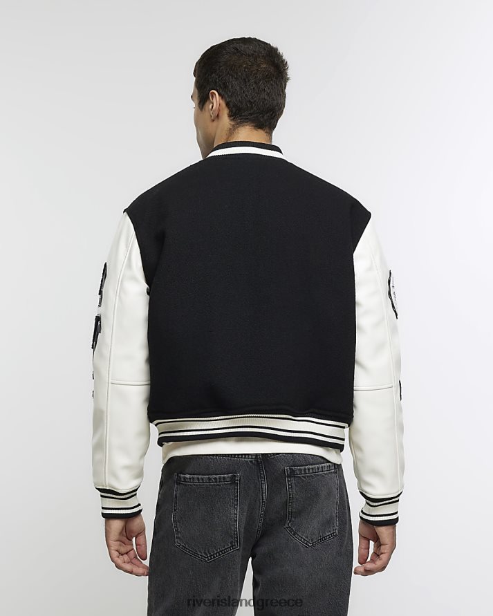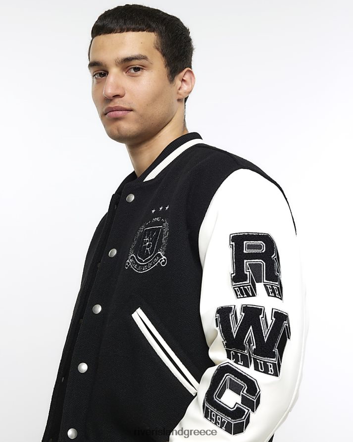 River Island ενδύματα μαύρος άνδρες κανονική εφαρμογή varsity bomber jacket B6N8X2699