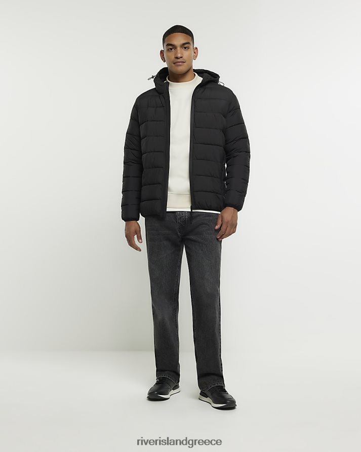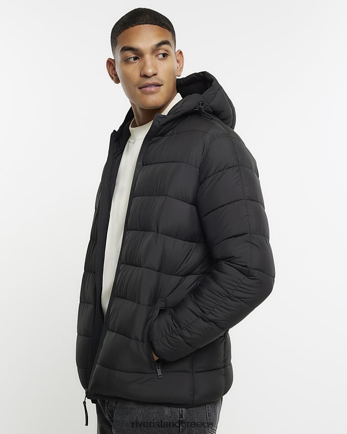River Island ενδύματα μαύρος άνδρες κανονικό τζάκετ με καπιτονέ με κουκούλα B6N8X2740