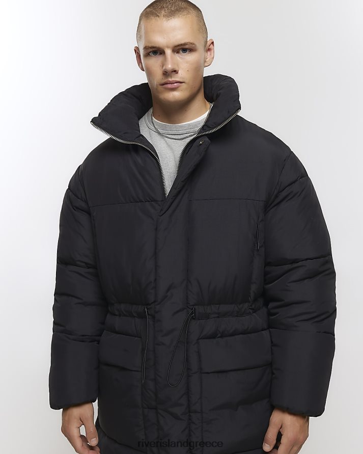 River Island ενδύματα μαύρος άνδρες κανονικό τζάκετ parka με παραγάδι B6N8X5601