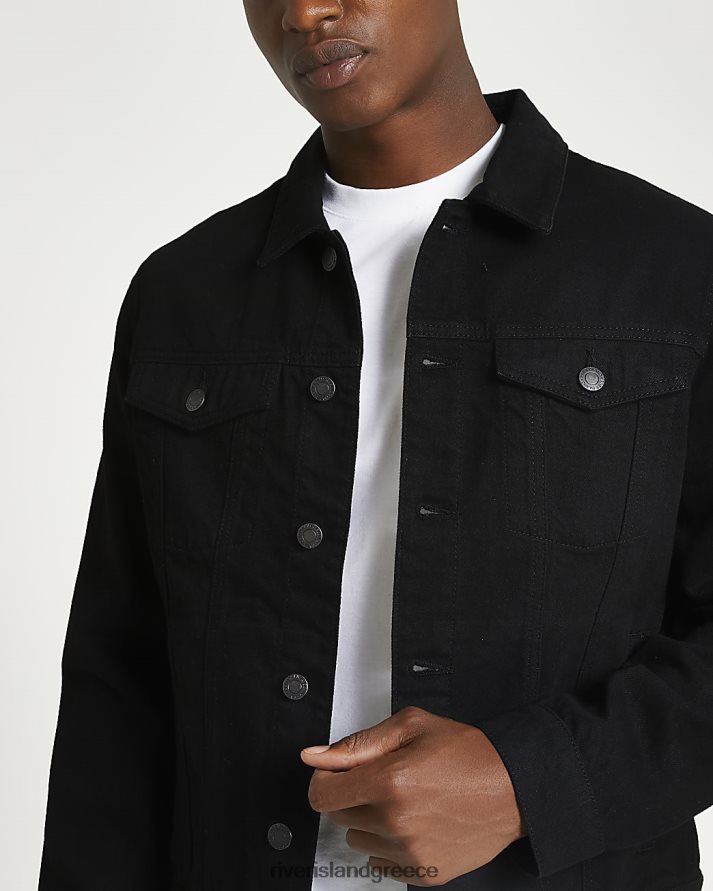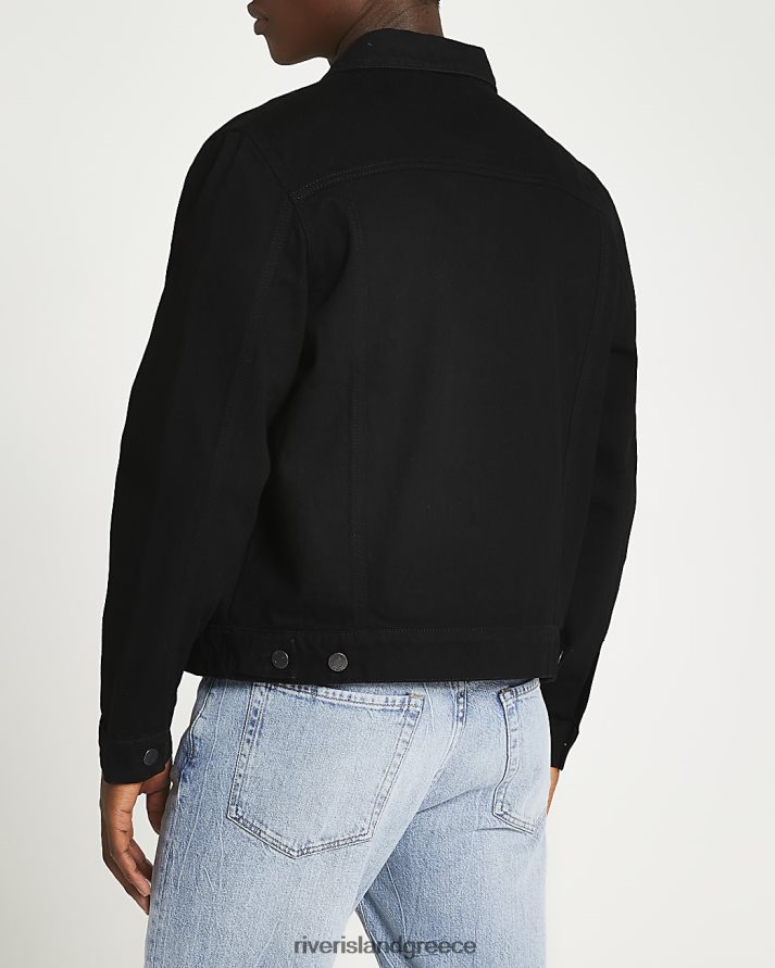 River Island ενδύματα μαύρος άνδρες κλασικό τζιν μπουφάν με κανονική εφαρμογή B6N8X5872