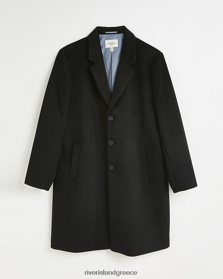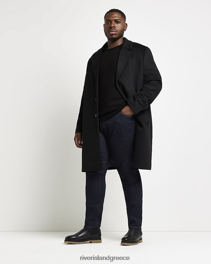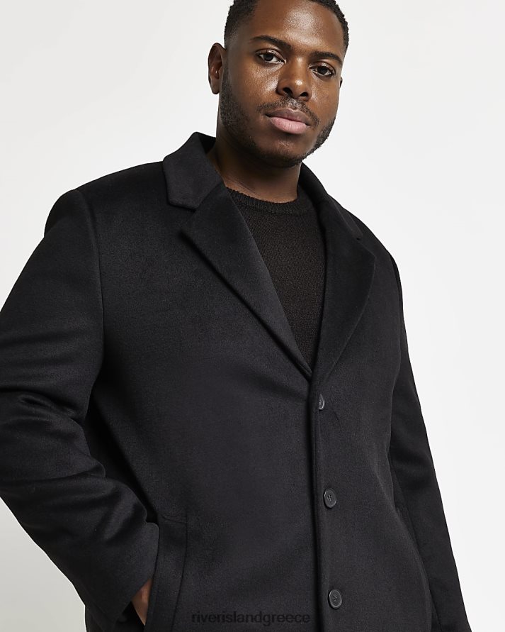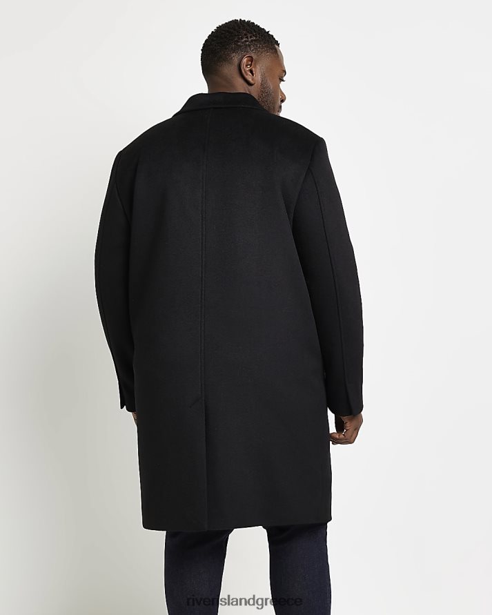 River Island ενδύματα μαύρος άνδρες μεγάλο & ψηλό μάλλινο πανωφόρι κανονικής εφαρμογής B6N8X5976