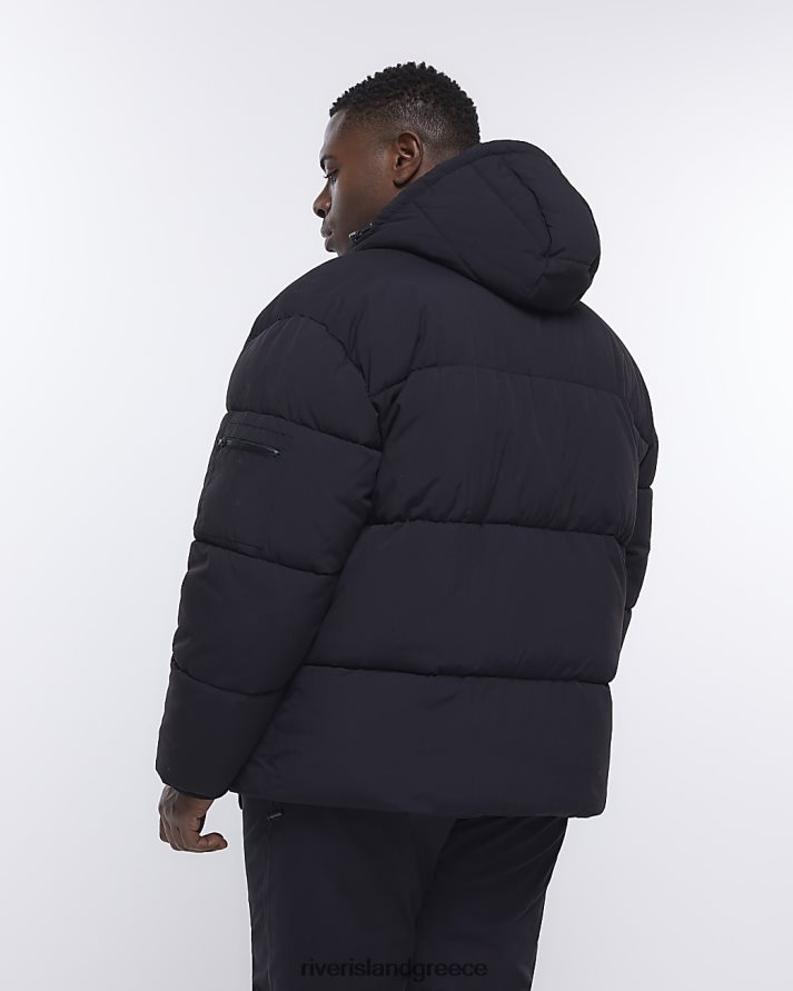 River Island ενδύματα μαύρος άνδρες μεγάλο & ψηλό τζάκετ με κουκούλα B6N8X5981