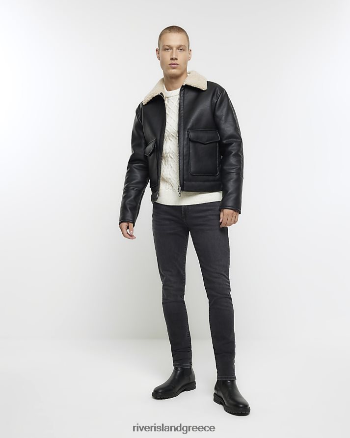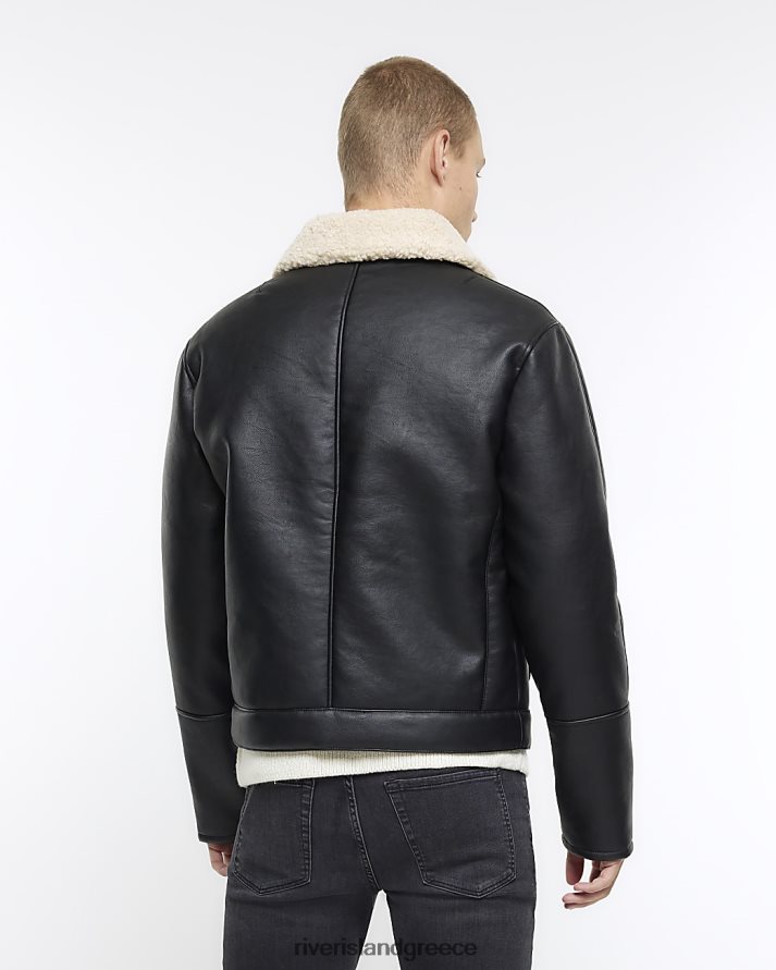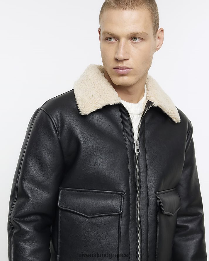 River Island ενδύματα μαύρος άνδρες μπουφάν αεροπόρου από τεχνητό δέρμα κανονικής εφαρμογής B6N8X5421