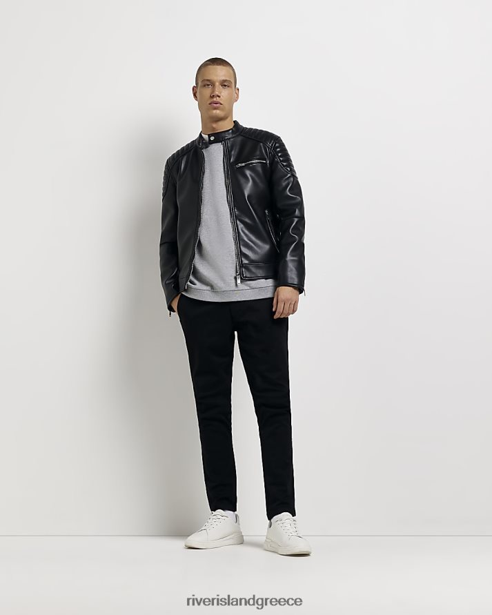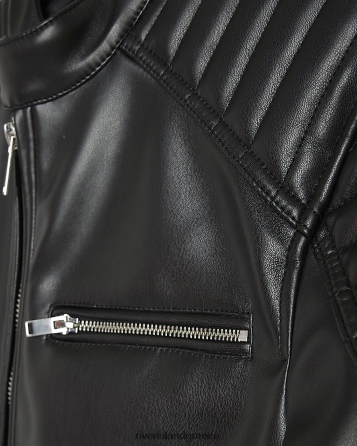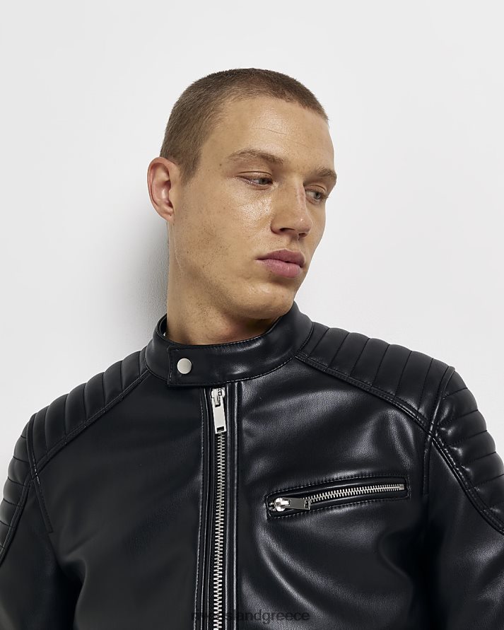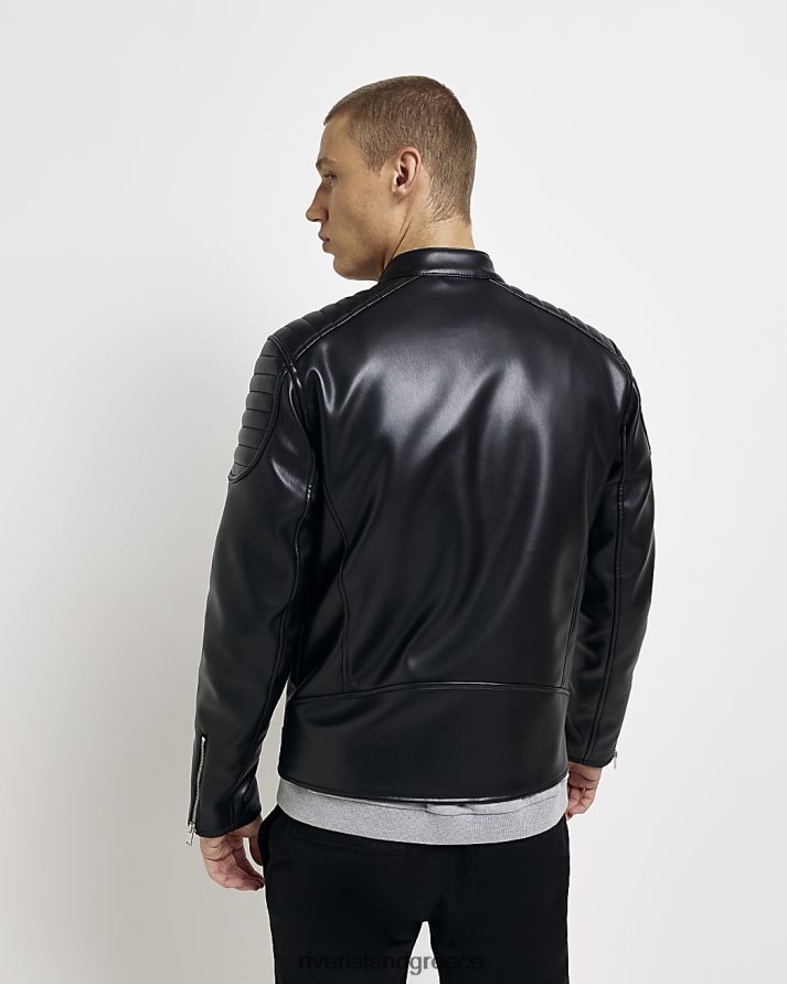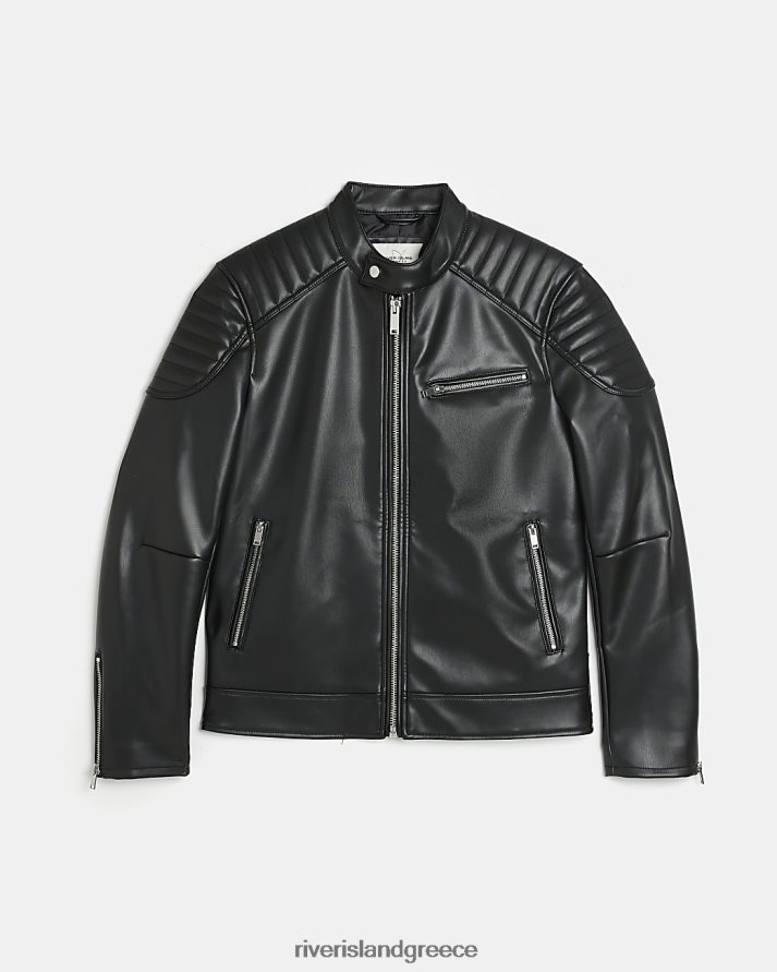 River Island ενδύματα μαύρος άνδρες μπουφάν racer από ψεύτικο δέρμα B6N8X5827