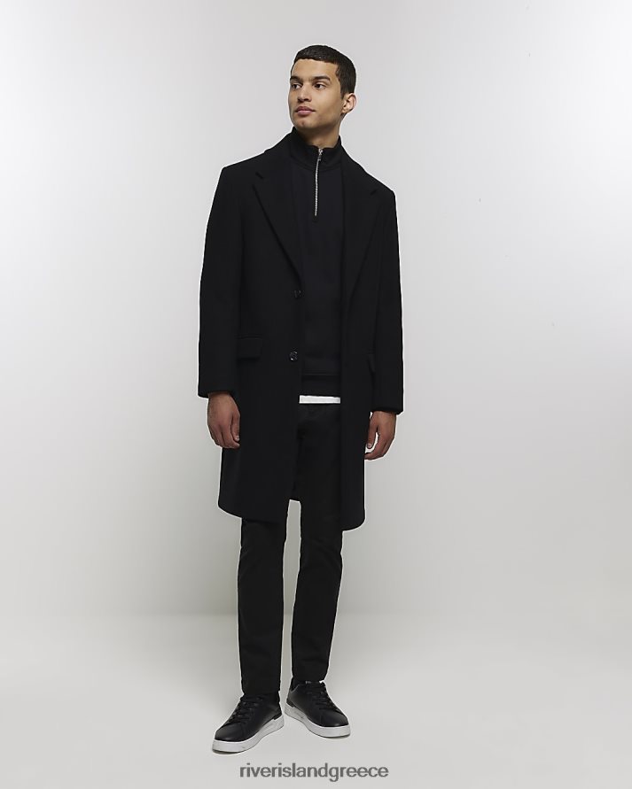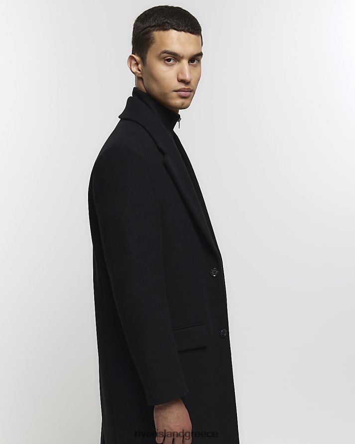 River Island ενδύματα μαύρος άνδρες παλτό premium με κανονική εφαρμογή B6N8X2352