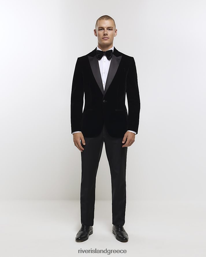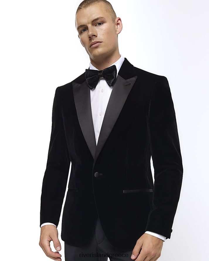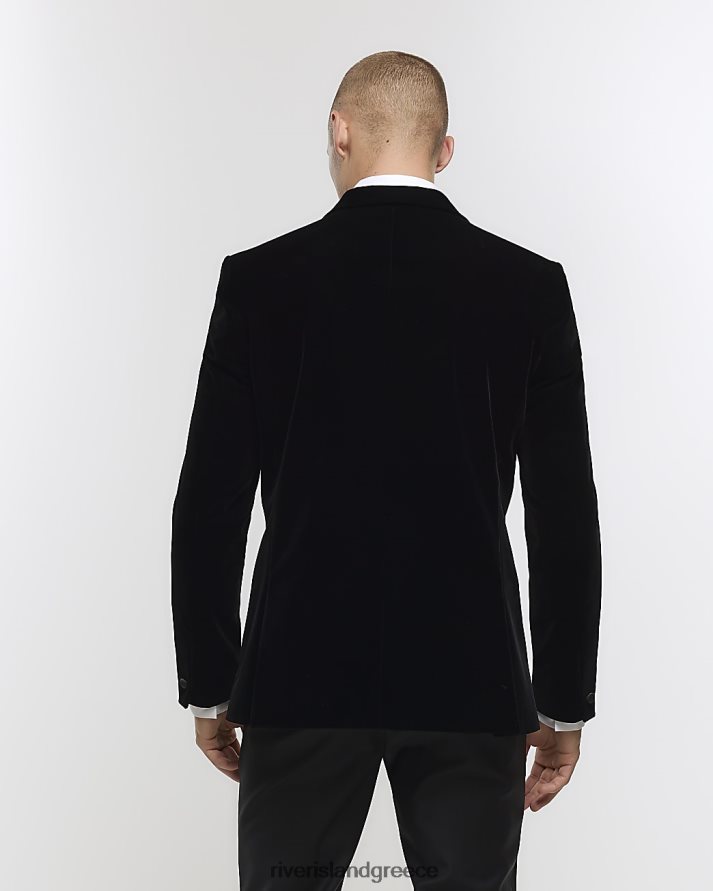 River Island ενδύματα μαύρος άνδρες slim fit βελούδινο σμόκιν μπουφάν B6N8X2338