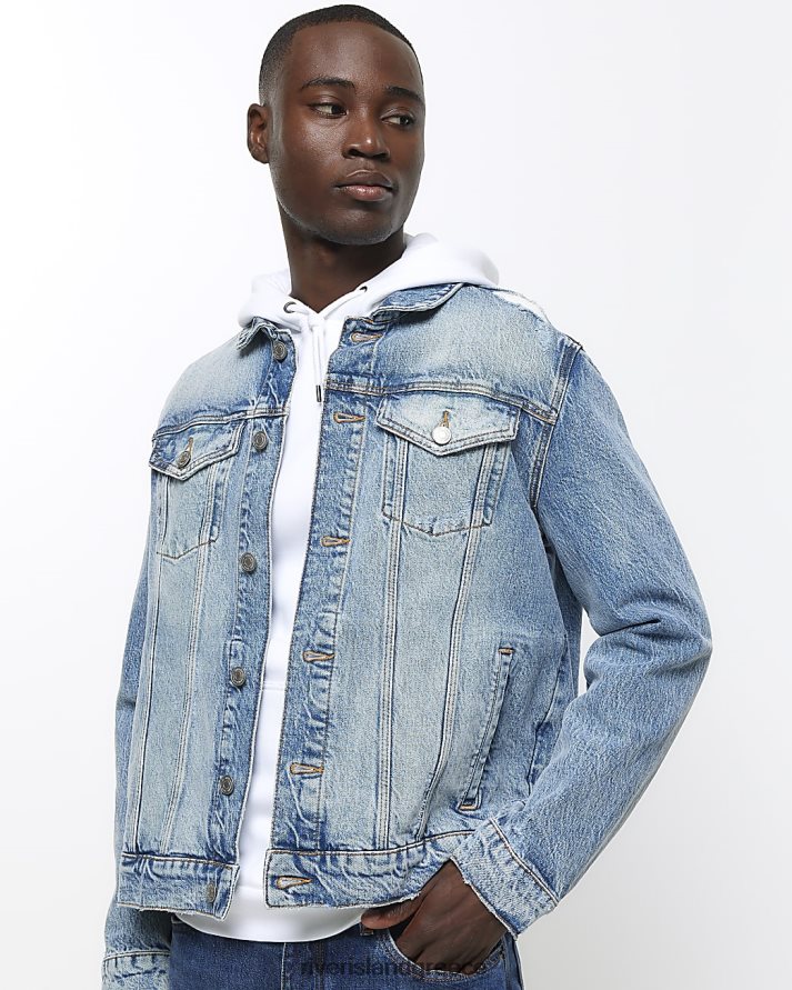 River Island ενδύματα μπλε άνδρες τζιν μπουφάν με κανονική εφαρμογή B6N8X5447