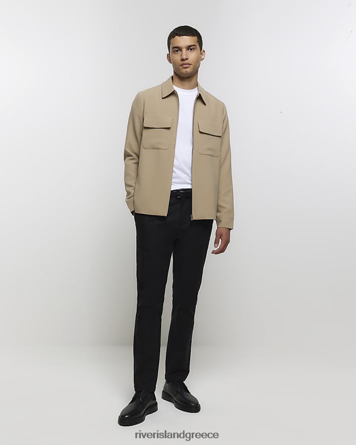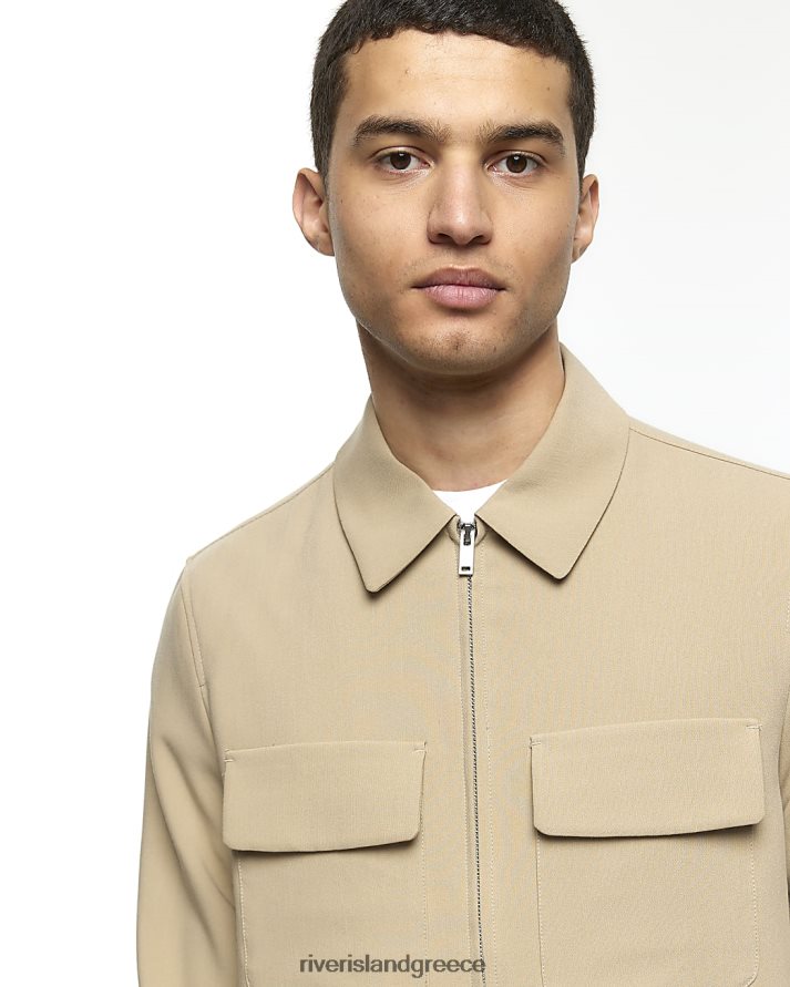 River Island ενδύματα πέτρα άνδρες Έξυπνη θήκη με φερμουάρ κανονικής εφαρμογής B6N8X5428