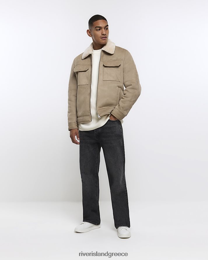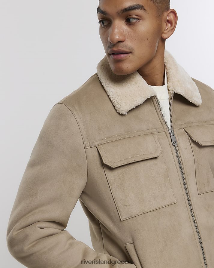 River Island ενδύματα πέτρα άνδρες δυτικό τζάκετ με κανονική εφαρμογή B6N8X2397