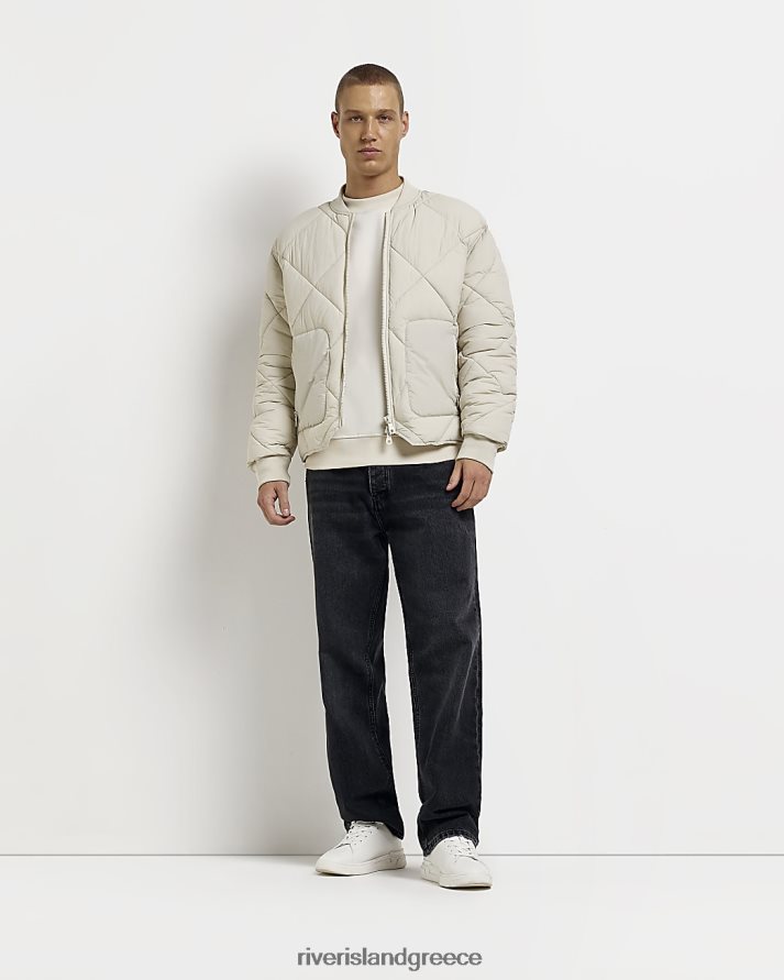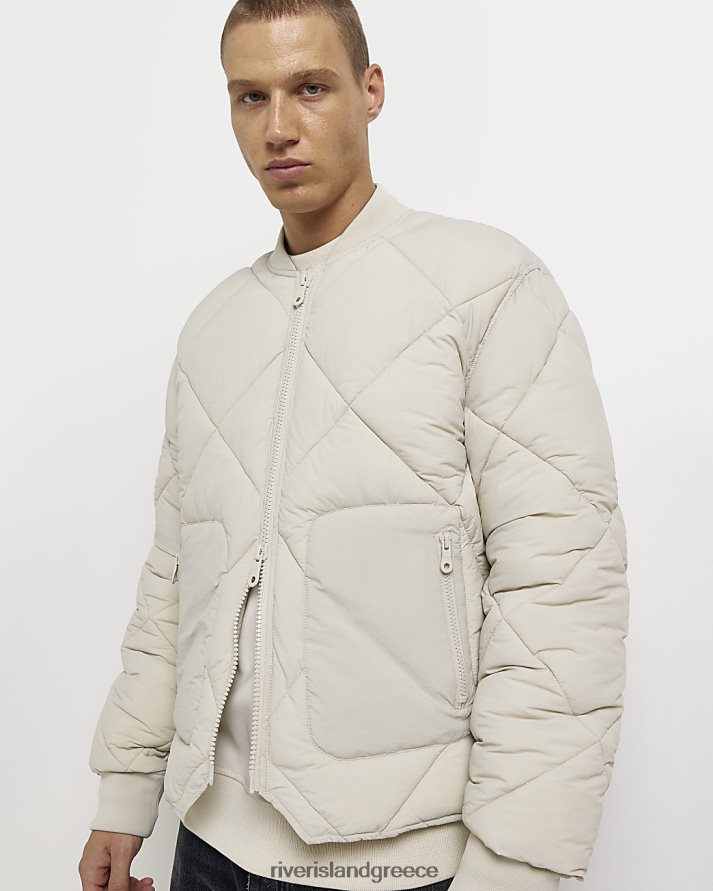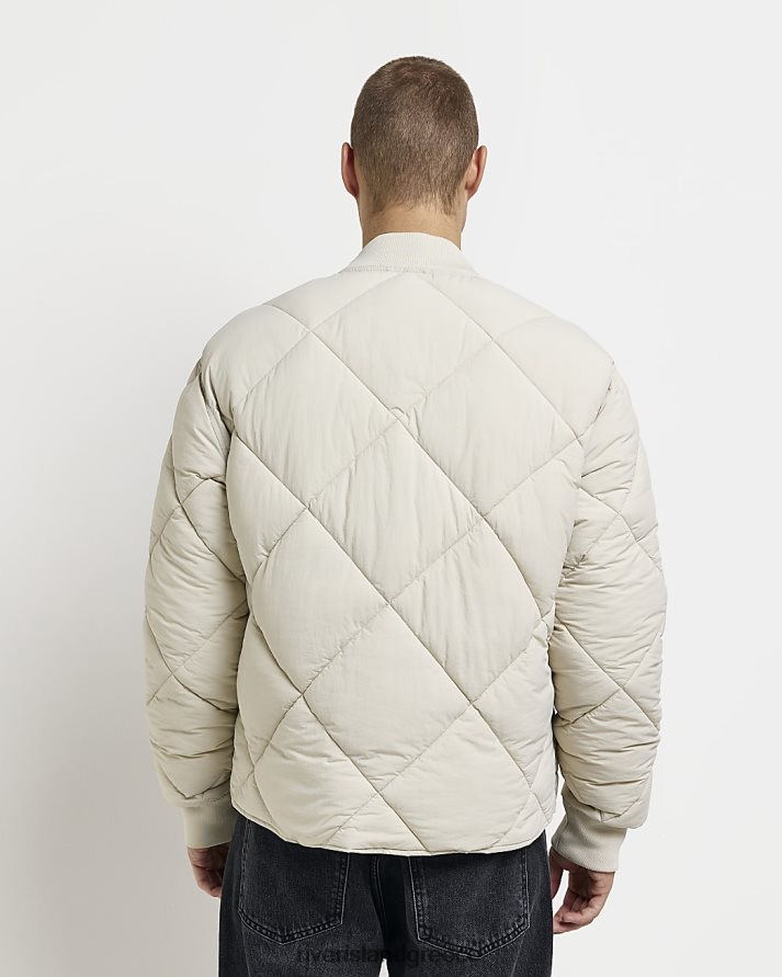River Island ενδύματα πέτρα άνδρες κανονική εφαρμογή καπιτονέ bomber jacket B6N8X5399