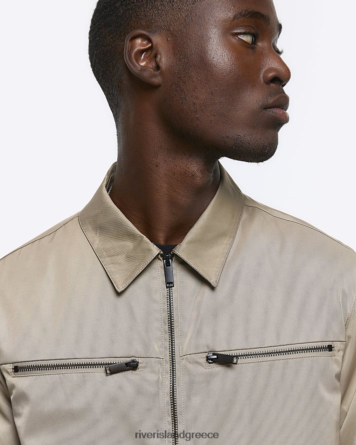 River Island ενδύματα πέτρα άνδρες κανονική εφαρμογή με φερμουάρ τεχνολογίας B6N8X2459