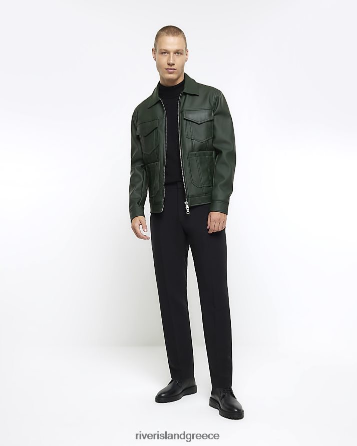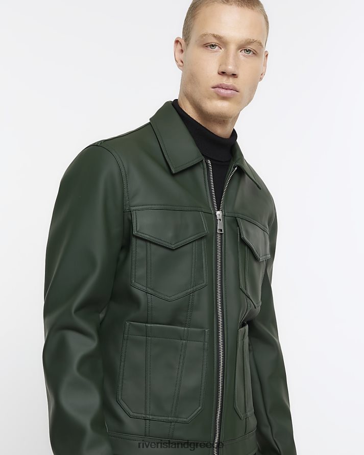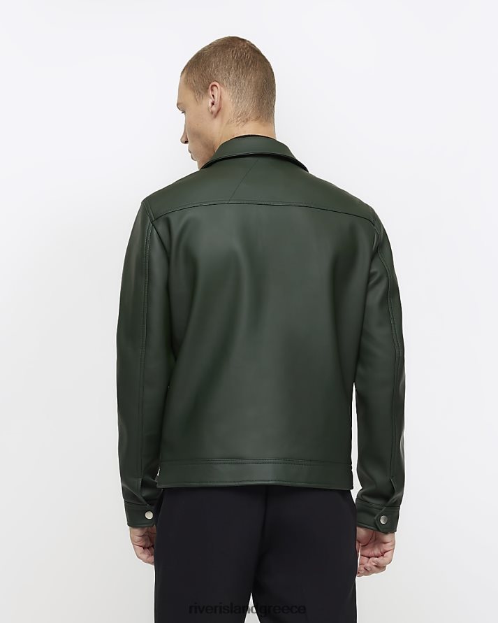River Island ενδύματα πράσινος άνδρες κανονική εφαρμογή από τεχνητό δέρμα δυτικό μπουφάν B6N8X5380