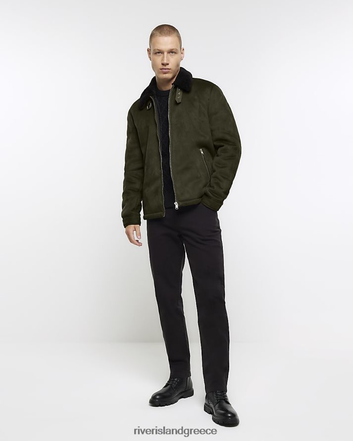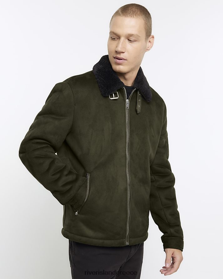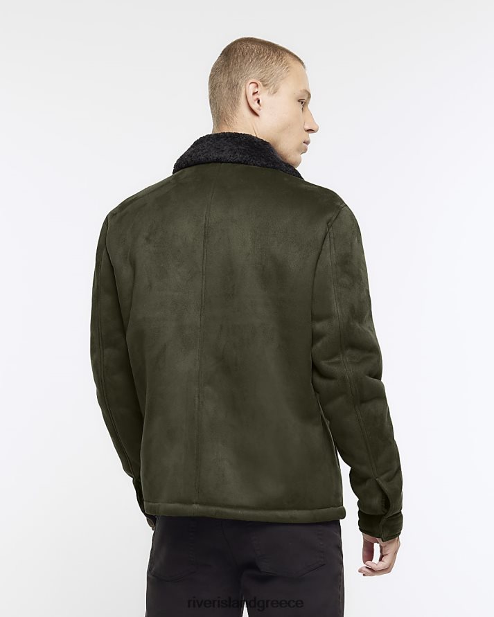 River Island ενδύματα πράσινος άνδρες κανονική εφαρμογή shearling aviator jacket B6N8X5626