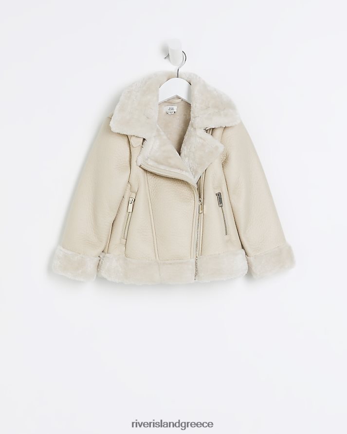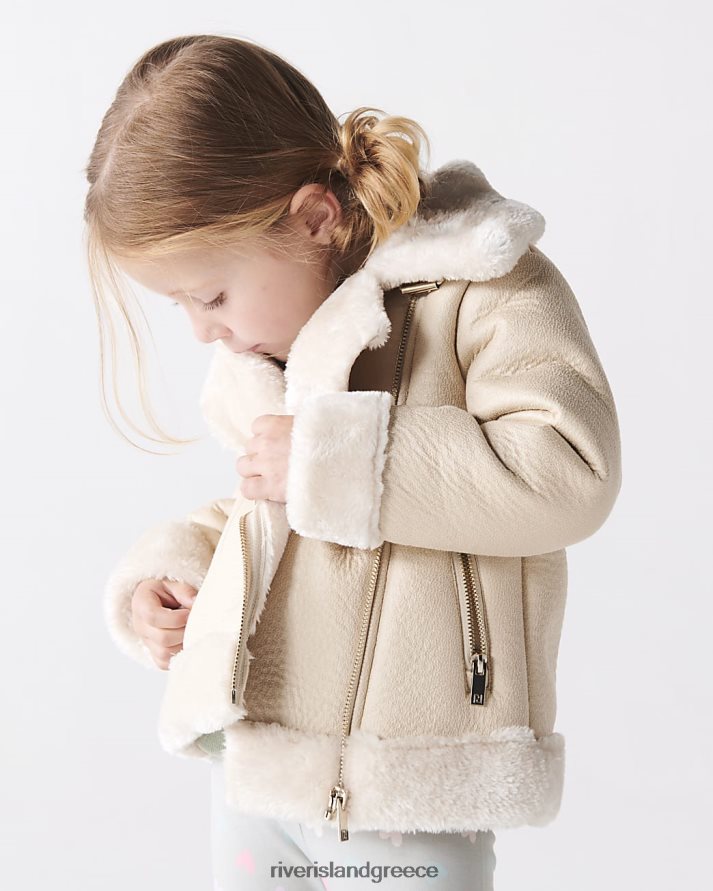 River Island ενδύματα κρέμα κορίτσια σακάκι αεροπόρου από ψεύτικη γούνα mg B6N8X3529
