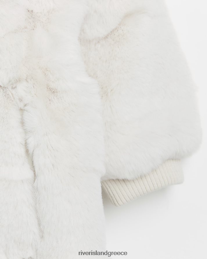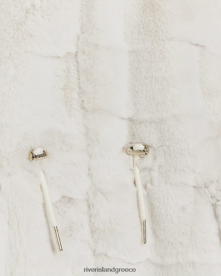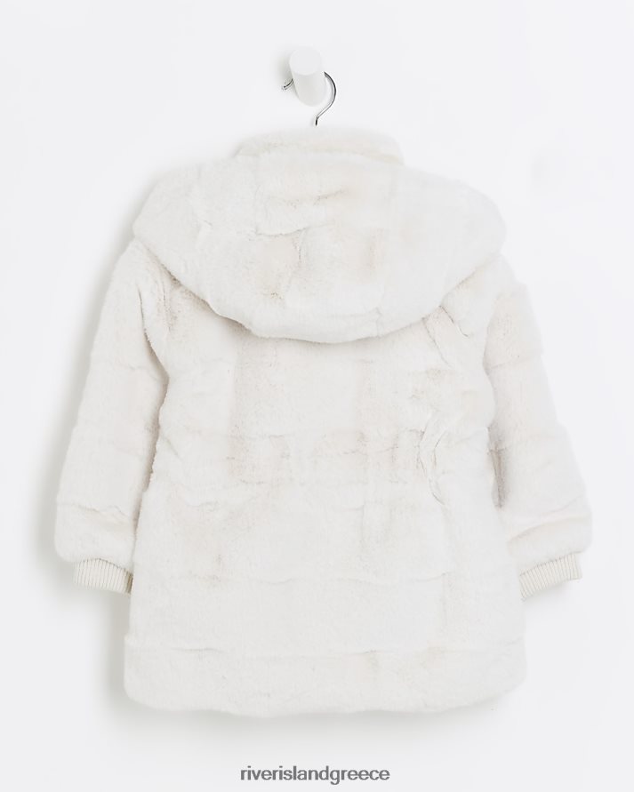 River Island ενδύματα κρέμα κορίτσια mg παλτό από ψεύτικη γούνα με κουκούλα B6N8X6527