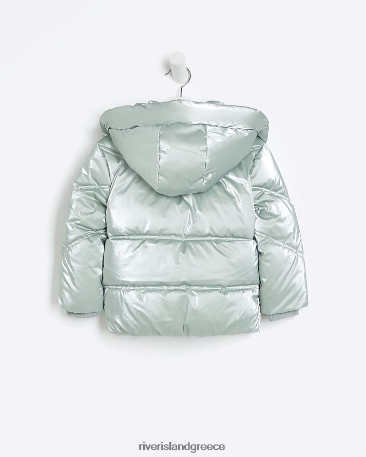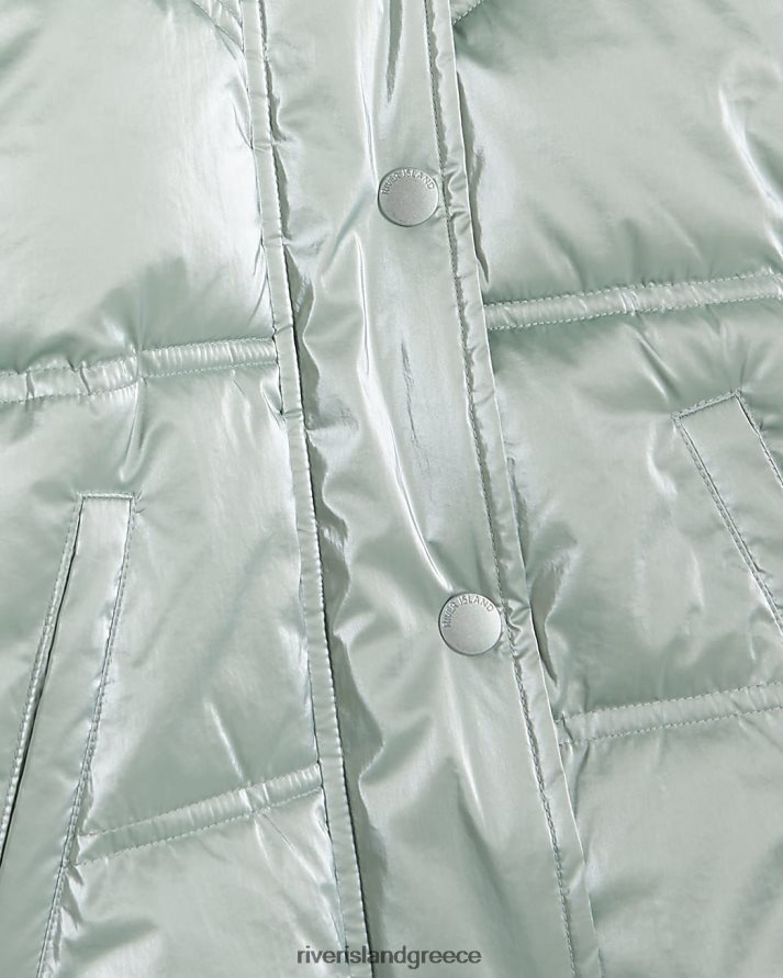 River Island ενδύματα μέντα κορίτσια mg μεταλλικό παλτό με κουκούλα B6N8X6523