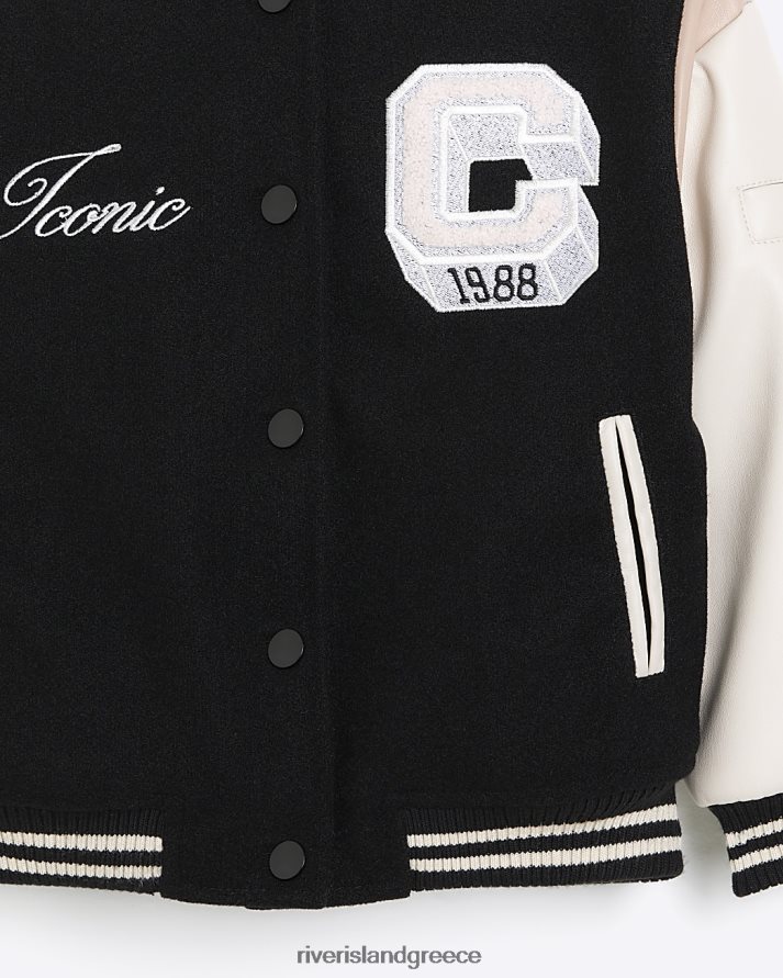 River Island ενδύματα μαύρος κορίτσια Mg πανεπιστημιακό μπουφάν bomber B6N8X6528