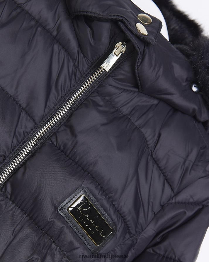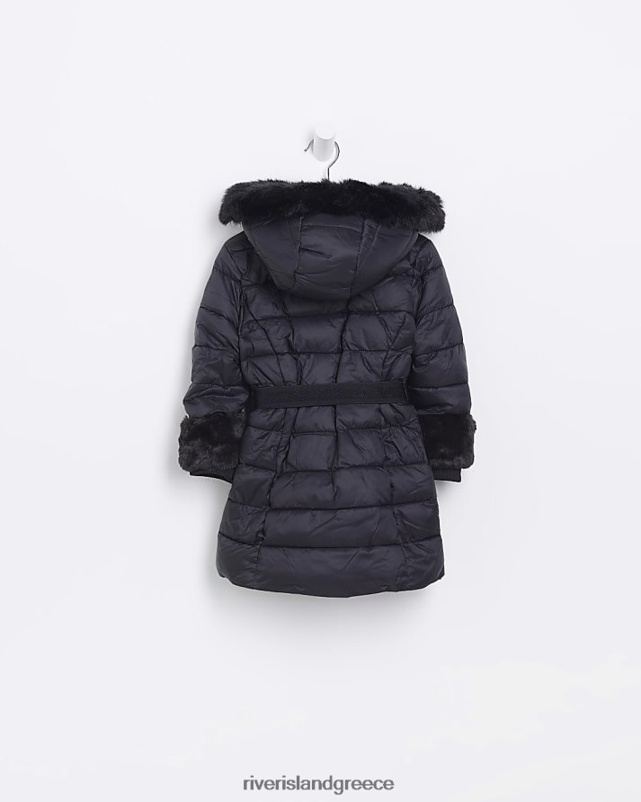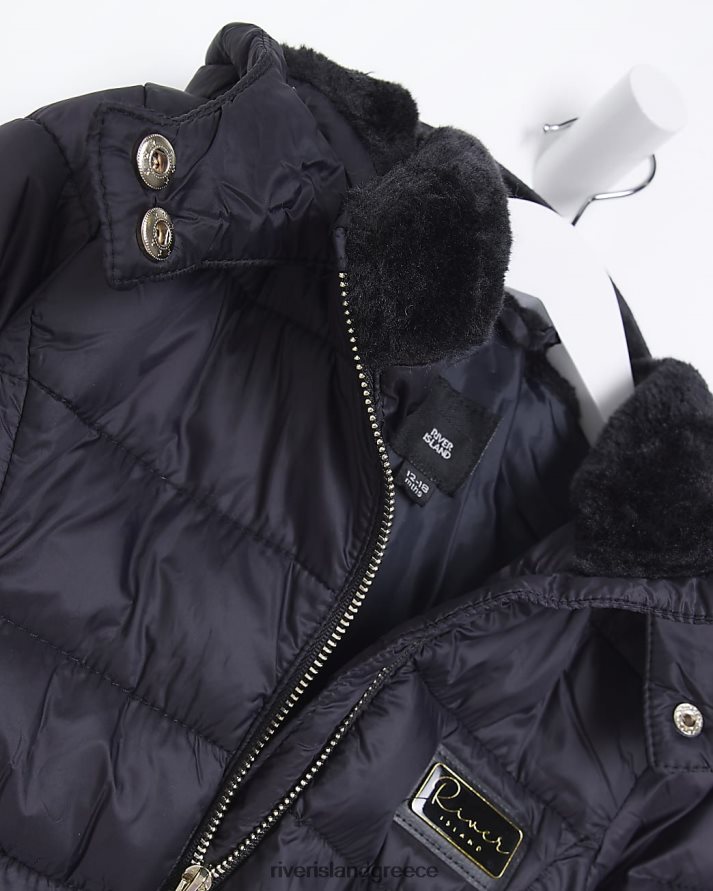 River Island ενδύματα μαύρος κορίτσια mg puffer παλτό από ψεύτικη γούνα B6N8X3556