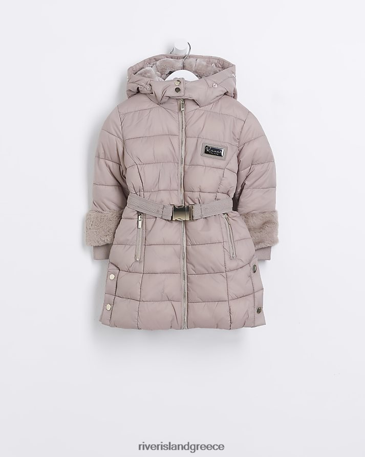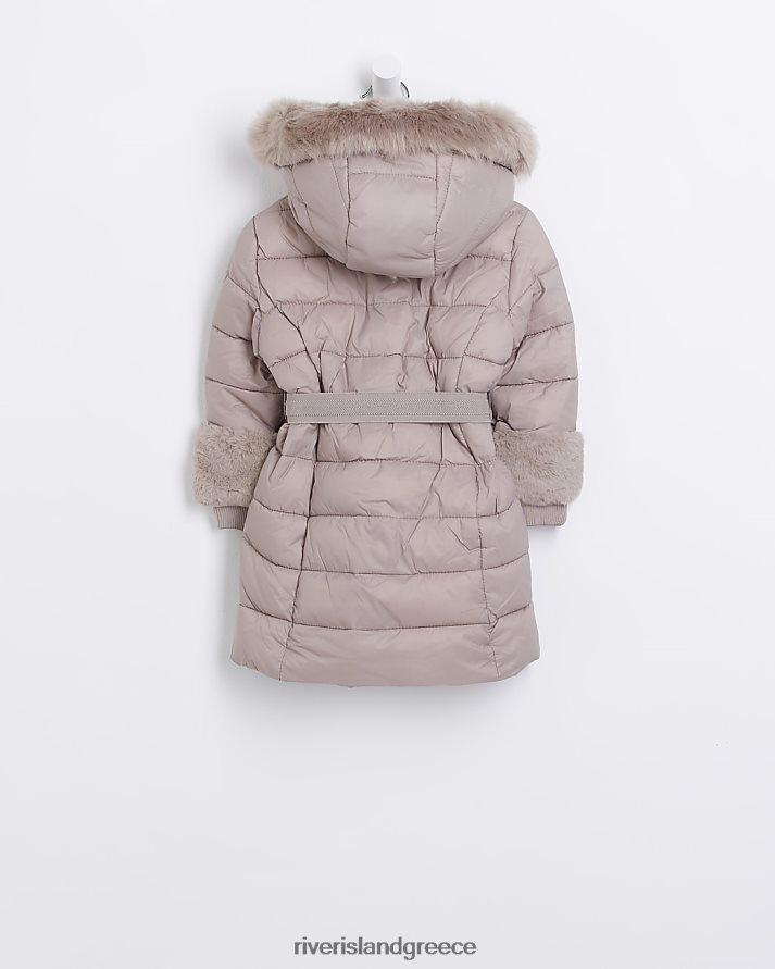 River Island ενδύματα πέτρα κορίτσια mg puffer παλτό από ψεύτικη γούνα B6N8X3557