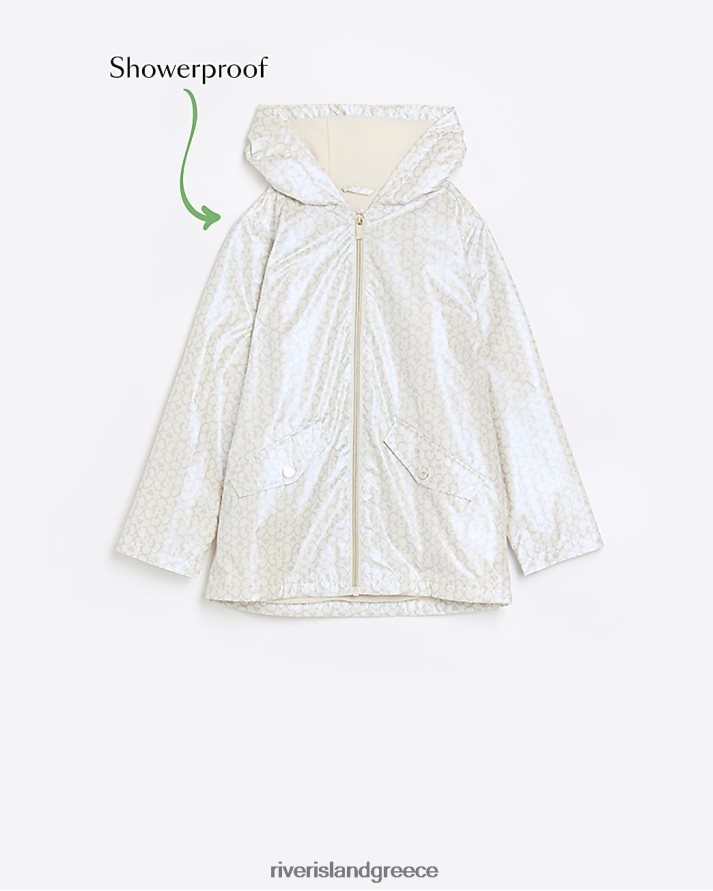 River Island ενδύματα άσπρο κορίτσια g λουλουδάτο μονόγραμμα αδιάβροχο παλτό B6N8X6252