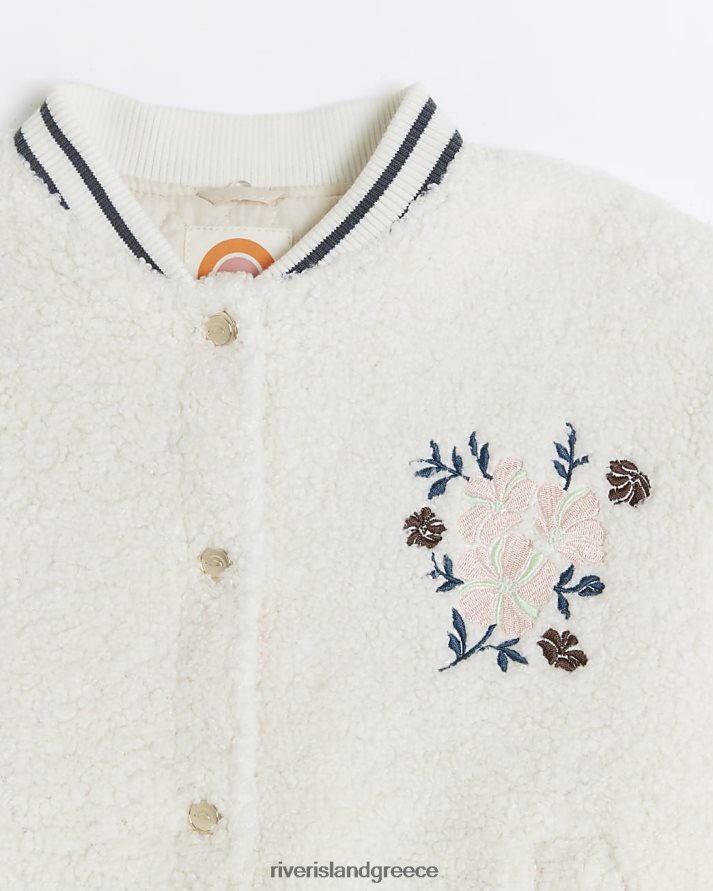 River Island ενδύματα εκρού κορίτσια g bomber τζάκετ borg B6N8X6103