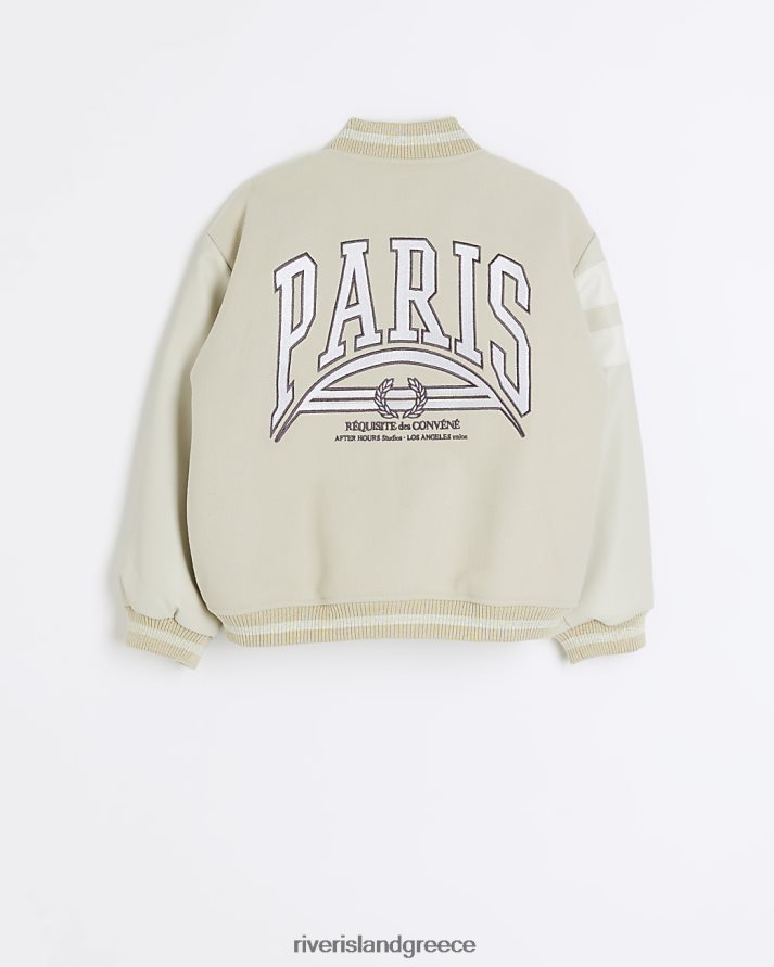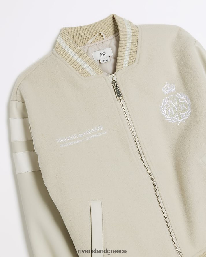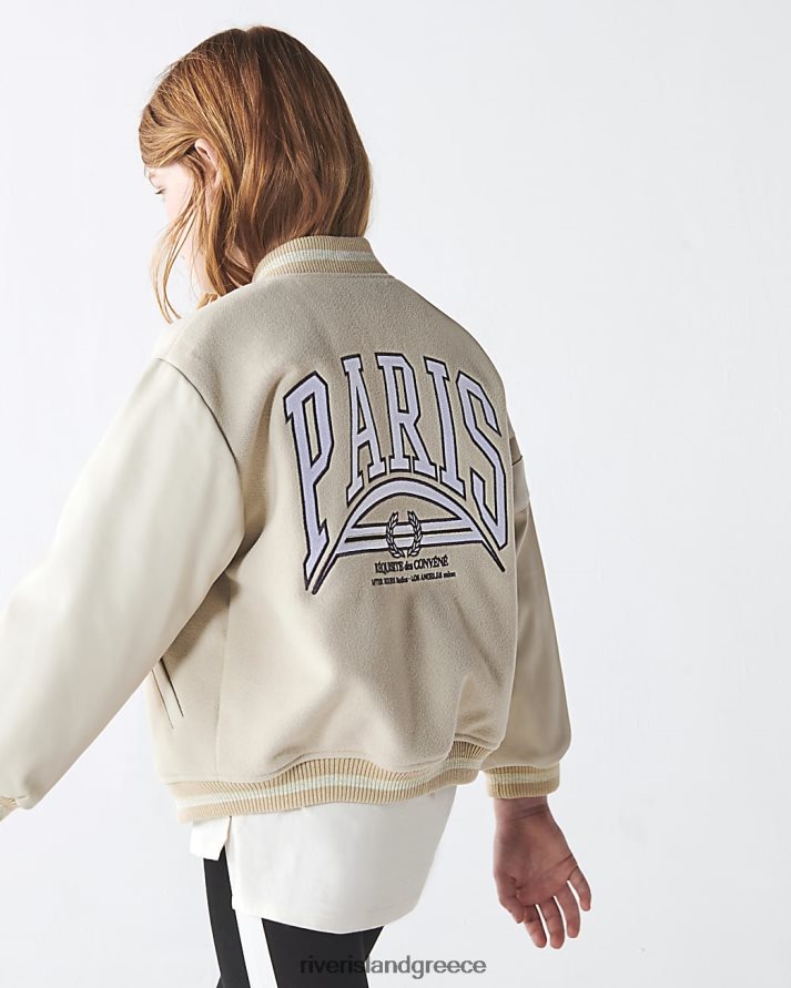 River Island ενδύματα κρέμα κορίτσια g κεντητό τζάκετ varsity bomber B6N8X6182