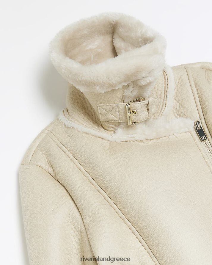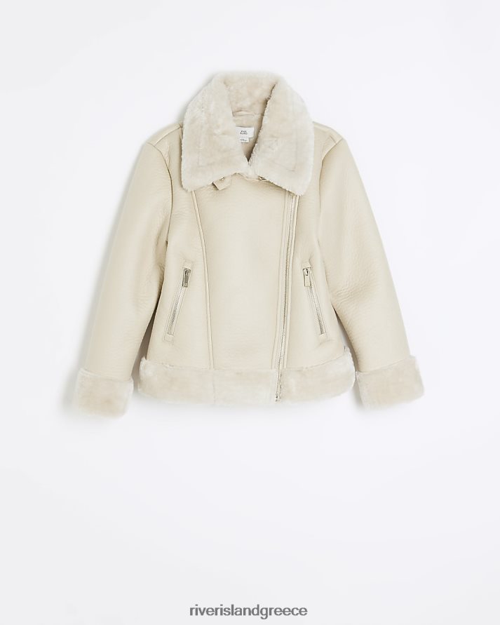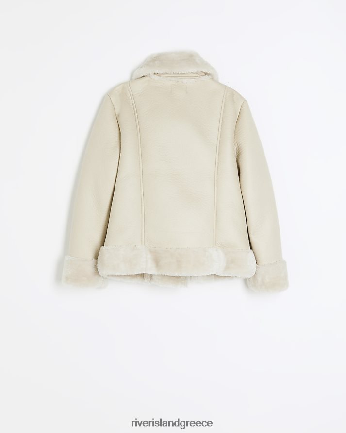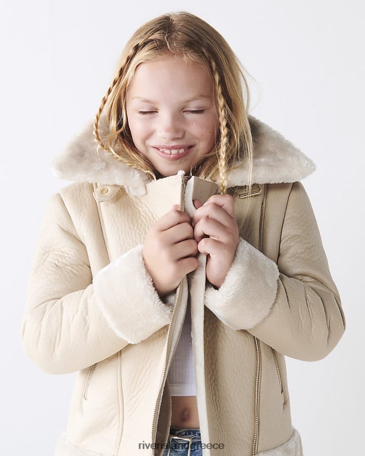 River Island ενδύματα κρέμα κορίτσια g μπουφάν αεροπόρου από ψεύτικη γούνα B6N8X3170