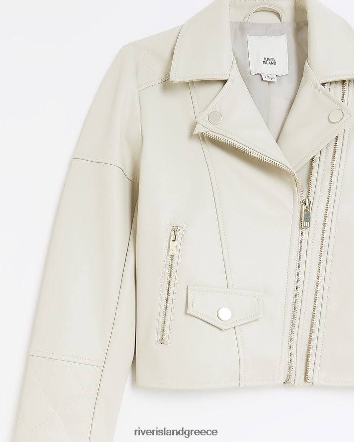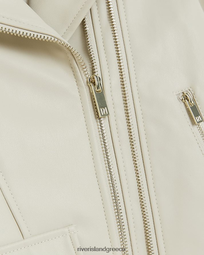 River Island ενδύματα κρέμα κορίτσια g μπουφάν biker από τεχνητό δέρμα B6N8X3208