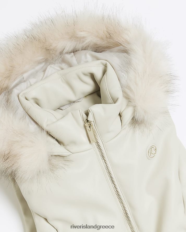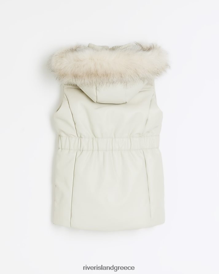 River Island ενδύματα κρέμα κορίτσια g ψεύτικο δέρμα με κουκούλα γιλέκο B6N8X6174