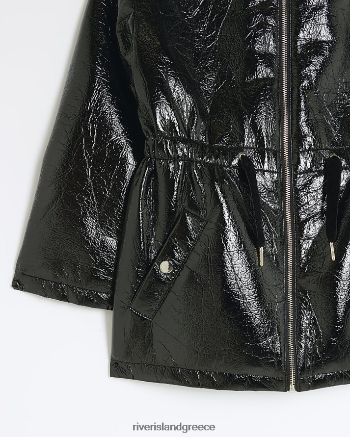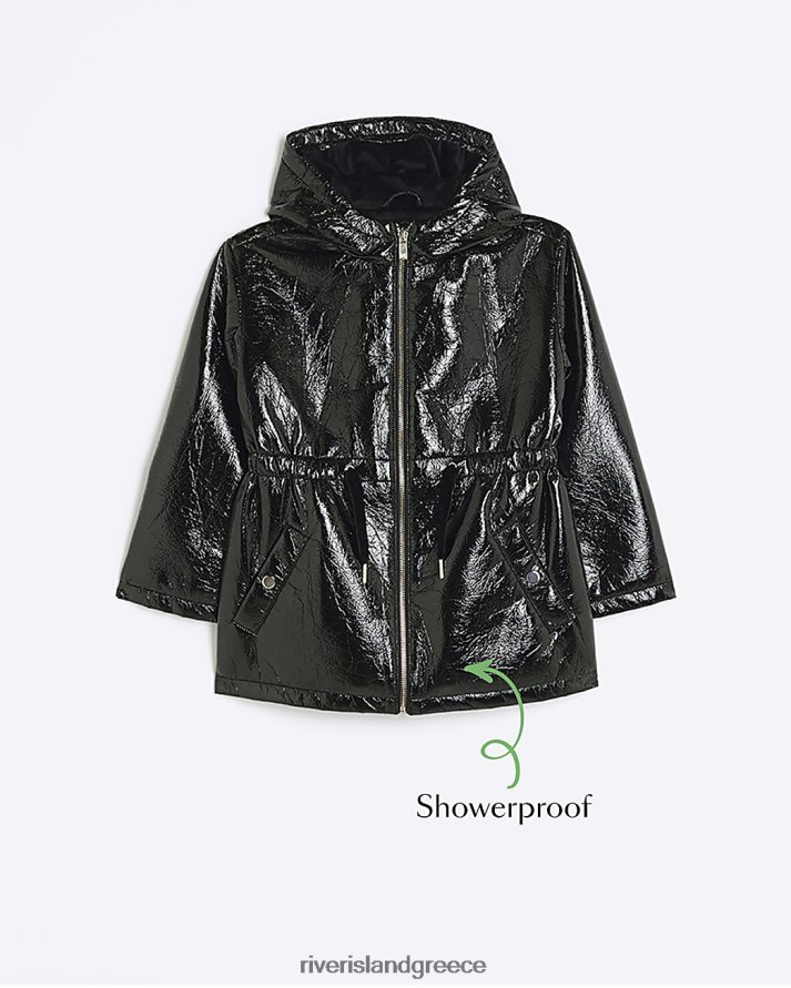 River Island ενδύματα μαύρος κορίτσια αδιάβροχο παλτό με τσιμπημένη μέση B6N8X6296