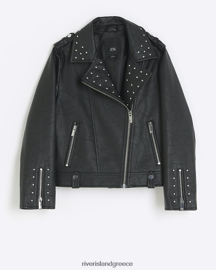 River Island ενδύματα μαύρος κορίτσια σακάκι biker με καρφιά B6N8X6014