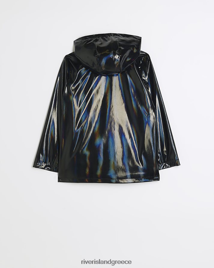 River Island ενδύματα μαύρος κορίτσια g ιριδίζον αδιάβροχο παλτό με κουκούλα B6N8X6261