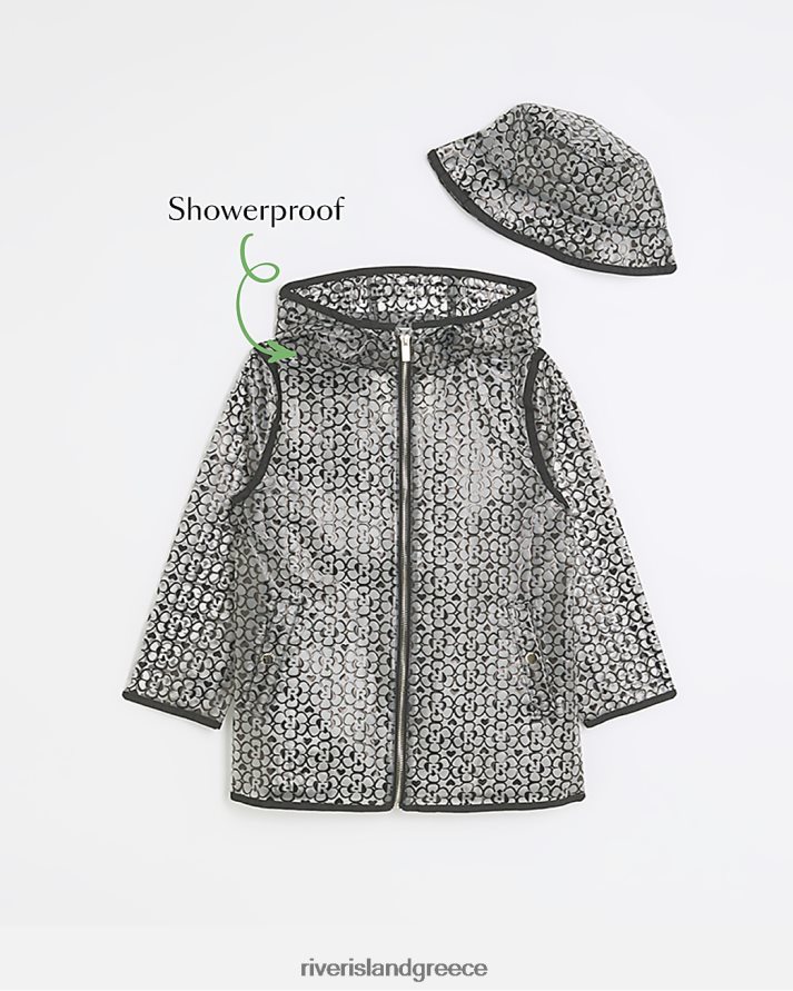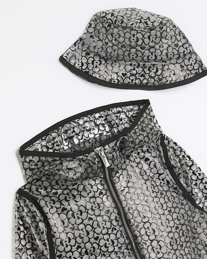 River Island ενδύματα μαύρος κορίτσια g μονόγραμμα αδιάβροχο σετ και καπέλο B6N8X6212