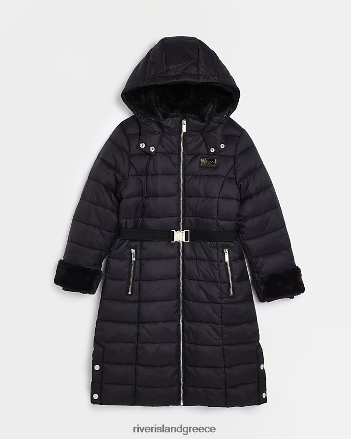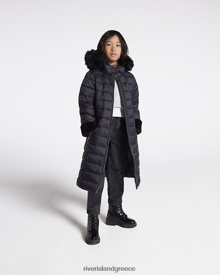 River Island ενδύματα μαύρος κορίτσια g παλτό με κουκούλα με παραγάδι B6N8X3407