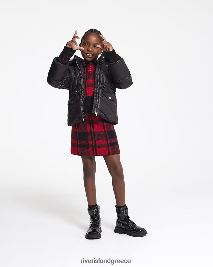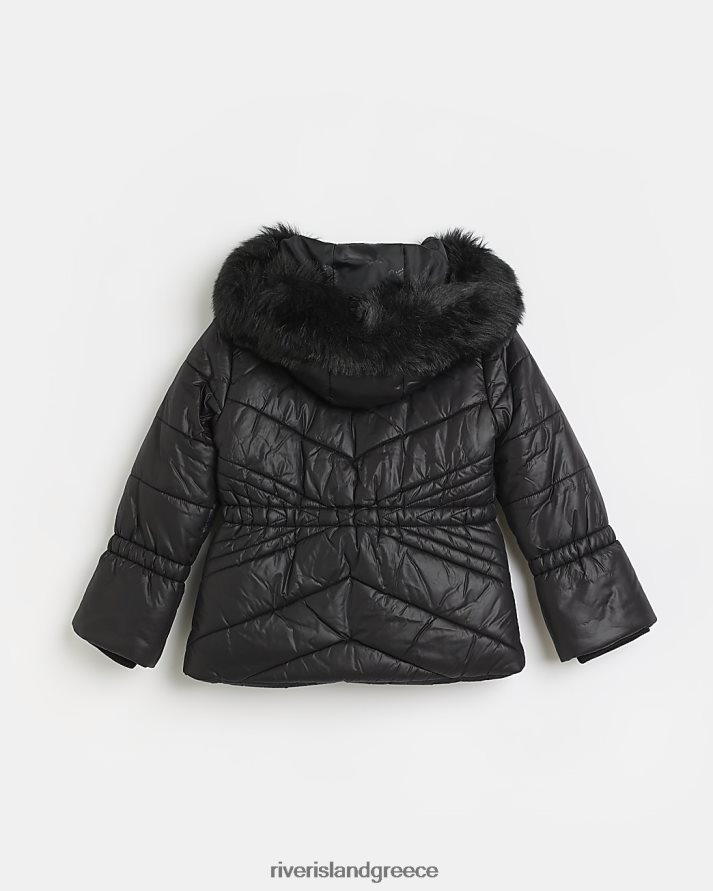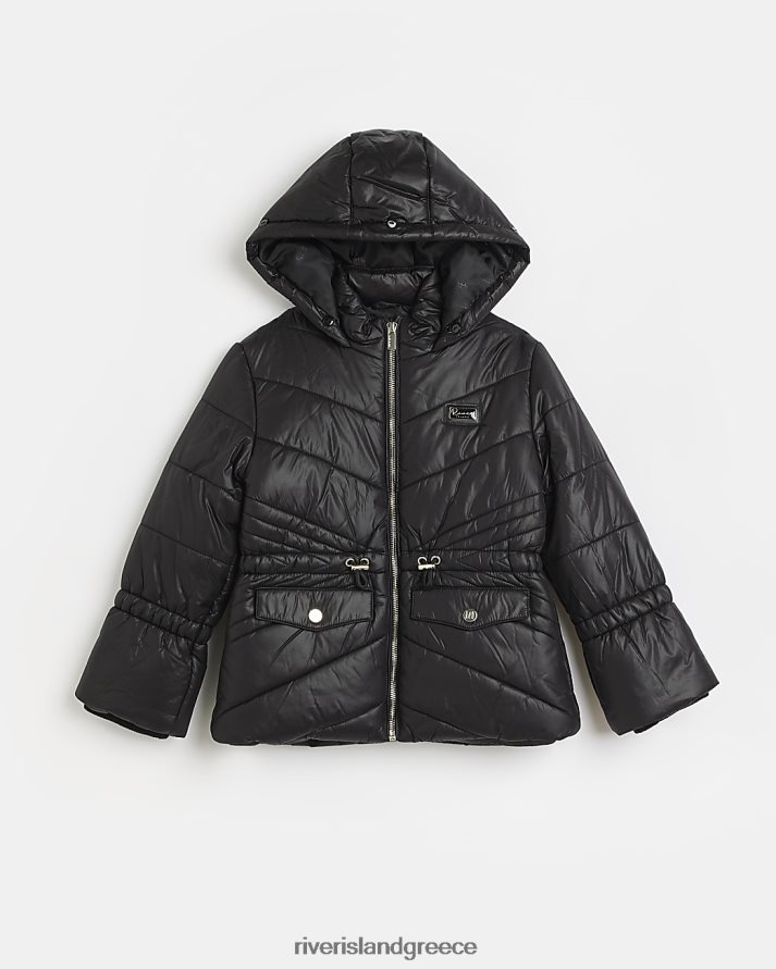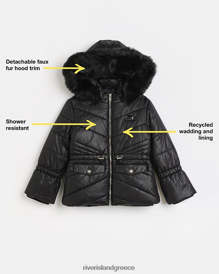 River Island ενδύματα μαύρος κορίτσια g παλτό με κουκούλα B6N8X6346