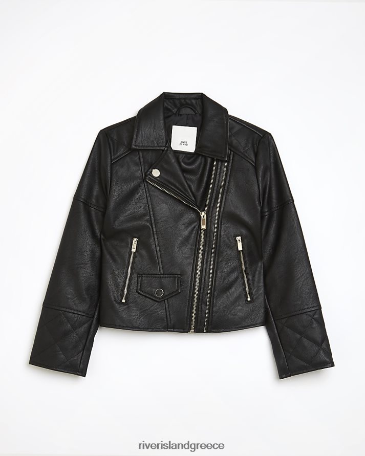 River Island ενδύματα μαύρος κορίτσια g pu biker jacket με διπλό φερμουάρ B6N8X3207