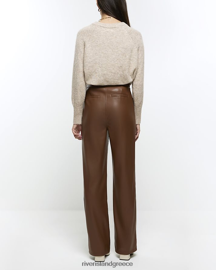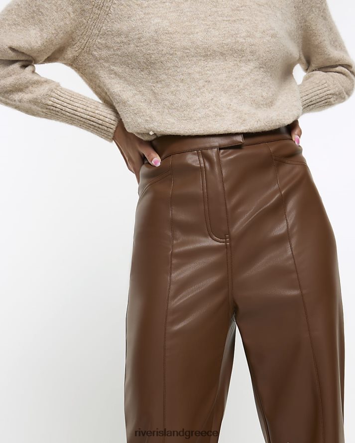 River Island ενδύματα καφέ γυναίκες ίσιο παντελόνι από ψεύτικο δέρμα B6N8X3887