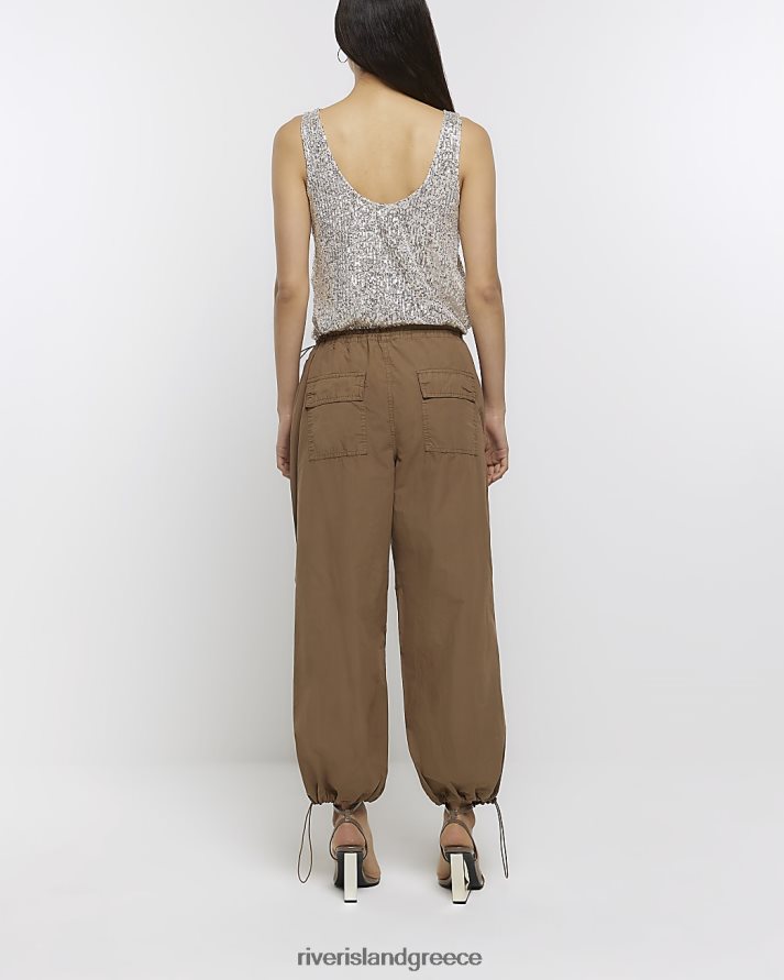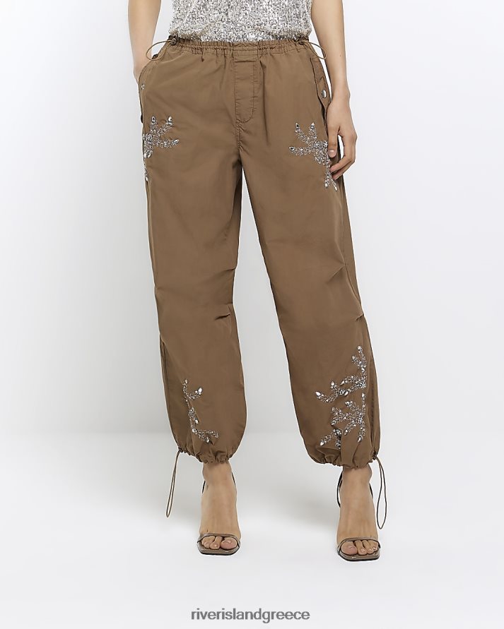 River Island ενδύματα καφέ γυναίκες διακοσμημένο παντελόνι αλεξίπτωτου B6N8X1684